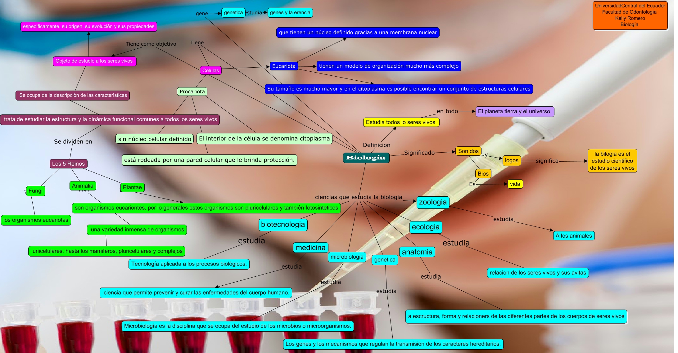 Este Cmap, tiene información relacionada con: Edagar David Garcia Fernandez, Eucariota ???? Su tamaño es mucho mayor y en el citoplasma es posible encontrar un conjunto de estructuras celulares, zoologia estudia A los animales, Biología ciencias que estudia la biologia microbiologia, Objeto de estudio a los seres vivos ???? Se ocupa de la descripción de las características, logos significa la bilogia es el estudio cientifico de los seres vivos, Procariota ???? El interior de la célula se denomina citoplasma, ecologia estudia relacion de los seres vivos y sus avitas, genetica estudia Los genes y los mecanismos que regulan la transmisión de los caracteres hereditarios., Son dos y logos, Biología Significado Son dos, microbiologia estudia Microbiología es la disciplina que se ocupa del estudio de los microbios o microorganismos., Los 5 Reinos ???? Animalia, Biología ciencias que estudia la biologia anatomia, biotecnologia estudia Tecnología aplicada a los procesos biológicos., Biología gene genetica, Objeto de estudio a los seres vivos ???? específicamente, su origen, su evolución y sus propiedades, Fungi ???? los organismos eucariotas, genetica estudia genes y la erencia, Eucariota ???? tienen un modelo de organización mucho más complejo, Biología ciencias que estudia la biologia medicina
