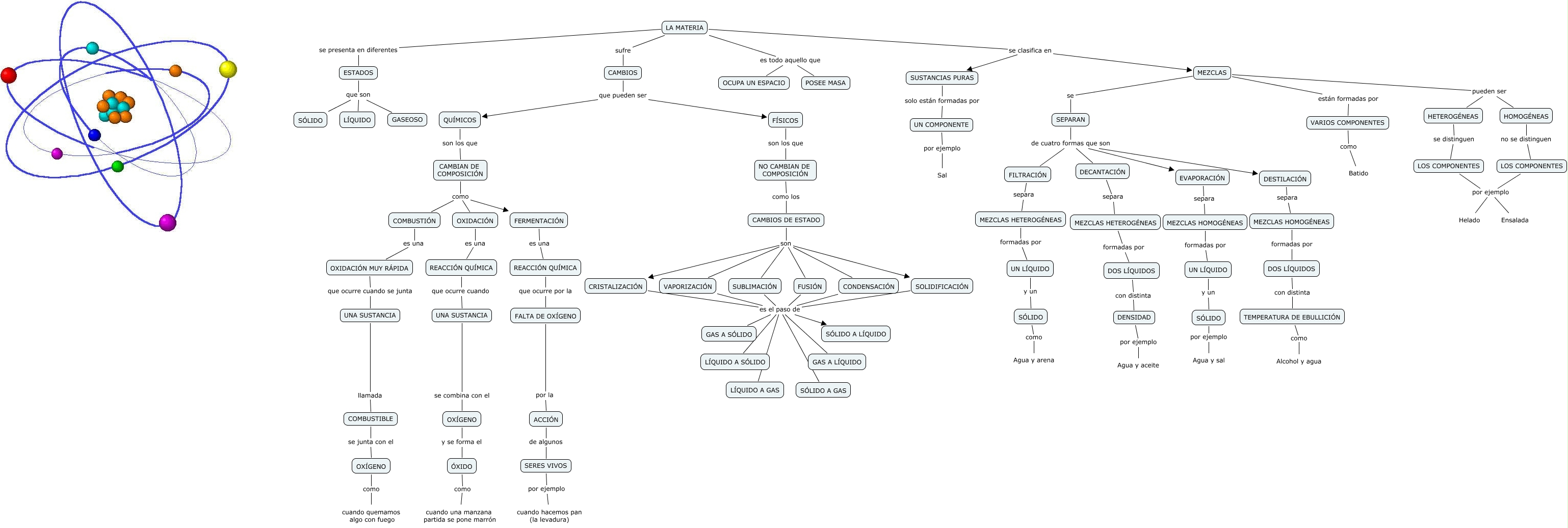 Este Cmap, tiene información relacionada con: LA MATERIA-Lucía M, VARIOS COMPONENTES como Batido, FERMENTACIÓN es una REACCIÓN QUÍMICA, CRISTALIZACIÓN es el paso de GAS A SÓLIDO, CAMBIOS que pueden ser QUÍMICOS, MEZCLAS pueden ser HETEROGÉNEAS, FUSIÓN es el paso de LÍQUIDO A SÓLIDO, SERES VIVOS por ejemplo cuando hacemos pan (la levadura), OXÍGENO como cuando quemamos algo con fuego, MEZCLAS HOMOGÉNEAS formadas por DOS LÍQUIDOS, SUSTANCIAS PURAS solo están formadas por UN COMPONENTE, DENSIDAD por ejemplo Agua y aceite, FILTRACIÓN separa MEZCLAS HETEROGÉNEAS, CAMBIOS DE ESTADO son CRISTALIZACIÓN, UNA SUSTANCIA se combina con el OXÍGENO, SUBLIMACIÓN es el paso de GAS A SÓLIDO, FUSIÓN es el paso de SÓLIDO A GAS, REACCIÓN QUÍMICA que ocurre cuando UNA SUSTANCIA, CAMBIOS que pueden ser FÍSICOS, TEMPERATURA DE EBULLICIÓN como Alcohol y agua, SEPARAN de cuatro formas que son DESTILACIÓN