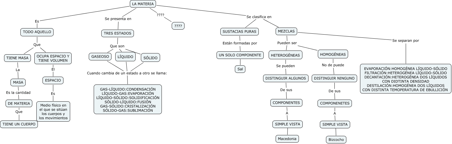 Este Cmap, tiene información relacionada con: LlA MATERIA-Miguel J, LA MATERIA Se clasifica en MEZCLAS, LÍQUIDO Cuando cambia de un estado a otro se llama: GAS-LÍQUIDO:CONDENSACIÓN LÍQUIDO-GAS:EVAPORACIÓN LÍQUIDO-SÓLIDO:SOLIDIFICACIÓN SÓLIDO-LÍQUIDO:FUSIÓN GAS-SÓLIDO:CRISTALIZACIÓN SÓLIDO-GAS:SUBLIMACIÓN, DISTINGUIR ALGUNOS De sus COMPONENTES, GASEOSO Cuando cambia de un estado a otro se llama: GAS-LÍQUIDO:CONDENSACIÓN LÍQUIDO-GAS:EVAPORACIÓN LÍQUIDO-SÓLIDO:SOLIDIFICACIÓN SÓLIDO-LÍQUIDO:FUSIÓN GAS-SÓLIDO:CRISTALIZACIÓN SÓLIDO-GAS:SUBLIMACIÓN, LA MATERIA ???? ????, SIMPLE VISTA ???? Bizcocho, SIMPLE VISTA ???? Macedonia, TRES ESTADOS Que son SÓLIDO, DISTINGUIR NINGUNO De sus COMPONENETES, OCUPA ESPACIO Y TIENE VOLUMEN El ESPACIO, LA MATERIA Se clasifica en SUSTACIAS PURAS, LA MATERIA Se presenta en TRES ESTADOS, DE MATERIA Que TIENE UN CUERPO, TIENE MASA La MASA, HETEROGÉNEAS Se pueden DISTINGUIR ALGUNOS, TODO AQUELLO Que OCUPA ESPACIO Y TIENE VOLUMEN, MEZCLAS Pueden ser HETEROGÉNEAS, TRES ESTADOS Que son GASEOSO, SÓLIDO Cuando cambia de un estado a otro se llama: GAS-LÍQUIDO:CONDENSACIÓN LÍQUIDO-GAS:EVAPORACIÓN LÍQUIDO-SÓLIDO:SOLIDIFICACIÓN SÓLIDO-LÍQUIDO:FUSIÓN GAS-SÓLIDO:CRISTALIZACIÓN SÓLIDO-GAS:SUBLIMACIÓN, SUSTACIAS PURAS Están formadas por UN SOLO COMPONENTE