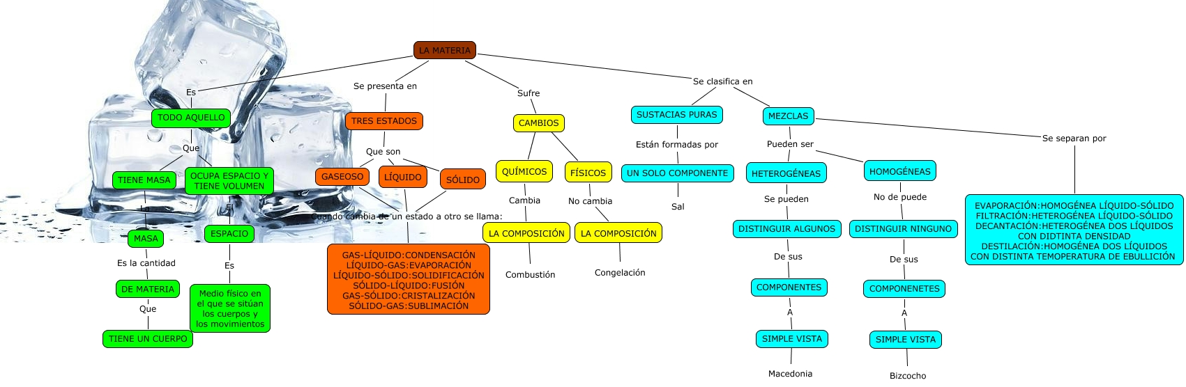 Este Cmap, tiene información relacionada con: LA MATERIA-Miguel J, LA MATERIA Se clasifica en MEZCLAS, LÍQUIDO Cuando cambia de un estado a otro se llama: GAS-LÍQUIDO:CONDENSACIÓN LÍQUIDO-GAS:EVAPORACIÓN LÍQUIDO-SÓLIDO:SOLIDIFICACIÓN SÓLIDO-LÍQUIDO:FUSIÓN GAS-SÓLIDO:CRISTALIZACIÓN SÓLIDO-GAS:SUBLIMACIÓN, DISTINGUIR ALGUNOS De sus COMPONENTES, GASEOSO Cuando cambia de un estado a otro se llama: GAS-LÍQUIDO:CONDENSACIÓN LÍQUIDO-GAS:EVAPORACIÓN LÍQUIDO-SÓLIDO:SOLIDIFICACIÓN SÓLIDO-LÍQUIDO:FUSIÓN GAS-SÓLIDO:CRISTALIZACIÓN SÓLIDO-GAS:SUBLIMACIÓN, LA MATERIA Sufre CAMBIOS, LA COMPOSICIÓN ???? Combustión, SIMPLE VISTA ???? Bizcocho, SIMPLE VISTA ???? Macedonia, TRES ESTADOS Que son SÓLIDO, DISTINGUIR NINGUNO De sus COMPONENETES, OCUPA ESPACIO Y TIENE VOLUMEN El ESPACIO, LA MATERIA Se clasifica en SUSTACIAS PURAS, LA MATERIA Se presenta en TRES ESTADOS, DE MATERIA Que TIENE UN CUERPO, FÍSICOS No cambia LA COMPOSICIÓN, LA COMPOSICIÓN ???? Congelación, TIENE MASA La MASA, CAMBIOS ???? QUÍMICOS, QUÍMICOS Cambia LA COMPOSICIÓN, HETEROGÉNEAS Se pueden DISTINGUIR ALGUNOS