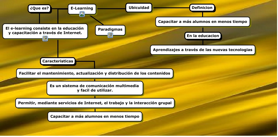 Este Cmap, tiene información relacionada con: Ubicuidad, Ubicuidad ???? E-Learning, E-Learning Caracteristicas Capacitar a más alumnos en menos tiempo, E-Learning Caracteristicas Permitir, mediante servicios de Internet, el trabajo y la interacción grupal, E-Learning ¿Que es? El e-learning consiste en la educación y capacitación a través de Internet., E-Learning Caracteristicas Es un sistema de comunicación multimedia y facil de utilizar., E-Learning Caracteristicas Facilitar el mantenimiento, actualización y distribución de los contenidos, E-Learning ???? Paradigmas, Ubicuidad Definicion Capacitar a más alumnos en menos tiempo, Capacitar a más alumnos en menos tiempo En la educacion Aprendizajes a través de las nuevas tecnologias