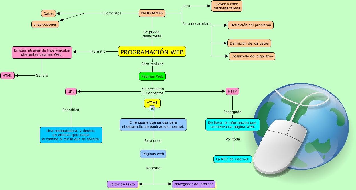 This Concept Map, created with IHMC CmapTools, has information related to: Html, Páginas Web Se necesitan 3 Conceptos HTML, PROGRAMAS Se puede desarrollar PROGRAMACIÓN WEB, Páginas Web Se necesitan 3 Conceptos URL, El lenguaje que se usa para el desarrollo de páginas de internet. Para crear Páginas web, HTML Es El lenguaje que se usa para el desarrollo de páginas de internet., PROGRAMAS Para desarrolarlo Desarrollo del algoritmo, PROGRAMAS Elementos Instrucciones, Enlazar através de hipervínculos diferentes páginas Web. Generó HTML, PROGRAMAS Para desarrolarlo Definición del problema, PROGRAMAS Para desarrolarlo Definición de los datos, PROGRAMAS Elementos Datos, HTTP Encargado De llevar la información que contiene una página Web., De llevar la información que contiene una página Web. Por toda La RED de internet., PROGRAMACIÓN WEB Para realizar Páginas Web, PROGRAMAS Para LLevar a cabo distintas tareas, Páginas web Necesito Navegador de internet, PROGRAMACIÓN WEB Permitió Enlazar através de hipervínculos diferentes páginas Web., URL Identifica Una computadora, y dentro, un archivo que indica el camino al curso que se solicita., Páginas web Necesito Editor de texto, Páginas Web Se necesitan 3 Conceptos HTTP
