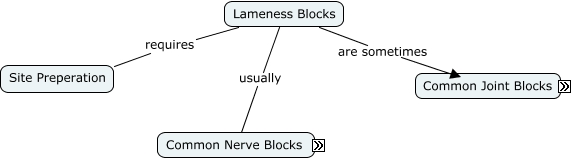 This Concept Map, created with IHMC CmapTools, has information related to: Equine Nerve and Joint Blocks, Hind and Forelimb Joint Blocks Stifle Joint, Lameness Blocks usually Common Nerve Blocks, Forelimb and Hindlimb Nerve Blocks Low 4 Point Block, Hind and Forelimb Joint Blocks Carpal Joint, Hind and Forelimb Joint Blocks Coffin Joint, Hind and Forelimb Joint Blocks Fetlock Joint, Forelimb and Hindlimb Nerve Blocks High 4 Point Block, Lameness Blocks requires Site Preperation, Hind and Forelimb Joint Blocks Hock Joint, Lameness Blocks are sometimes Hind and Forelimb Joint Blocks, Forelimb and Hindlimb Nerve Blocks Abaxial Sesamoid Block, Forelimb and Hindlimb Nerve Blocks Palmar/Plantar digital block