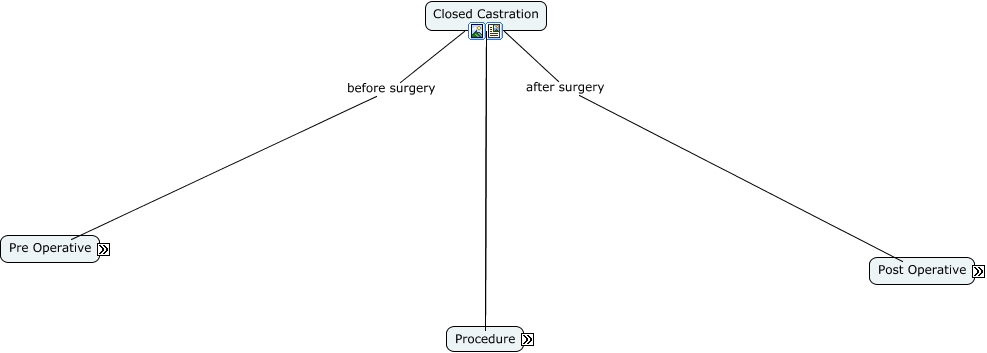 This Concept Map, created with IHMC CmapTools, has information related to: Equine Closed Castration, Closed Castration what is the Procedure, Post Operative may have Complications, Closed Castration before surgery Pre-Operative, Closed Castration involves Recumbant Anaesthesia Protocols, Pre-Operative need to know Client Considerations, Closed Castration after surgery Post Operative, Pre-Operative must have Pre-Op Exam, Post Operative essential Client Aftercare Considerations