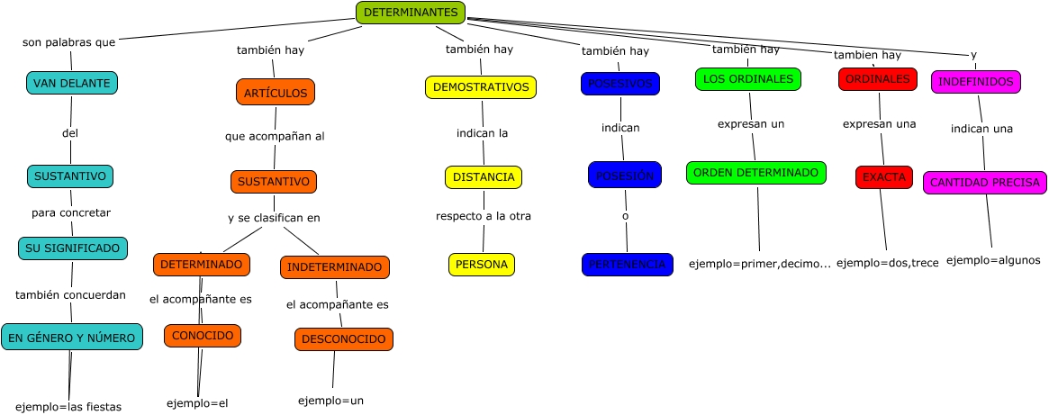 Este Cmap, tiene información relacionada con: LOS DETERMINANTES-Ángel y Lucas, LOS ORDINALES expresan un ORDEN DETERMINADO, POSESIÓN o PERTENENCIA, DEMOSTRATIVOS indican la DISTANCIA, SU SIGNIFICADO también concuerdan EN GÉNERO Y NÚMERO, CANTIDAD PRECISA ejemplo=algunos, DETERMINANTES también hay LOS ORDINALES, POSESIVOS indican POSESIÓN, DETERMINANTES y INDEFINIDOS, SUSTANTIVO y se clasifican en DETERMINADO, DETERMINADO el acompañante es CONOCIDO, ORDINALES expresan una EXACTA, SUSTANTIVO para concretar SU SIGNIFICADO, ARTÍCULOS que acompañan al SUSTANTIVO, INDETERMINADO el acompañante es DESCONOCIDO, DETERMINANTES son palabras que VAN DELANTE, DETERMINANTES también hay ARTÍCULOS, EN GÉNERO Y NÚMERO ejemplo=las fiestas, CONOCIDO ejemplo=el, SUSTANTIVO y se clasifican en INDETERMINADO, ejemplo=un ???? DESCONOCIDO