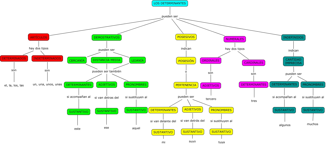Este Cmap, tiene información relacionada con: LOS DETERMINANTES- Andrés, Óscar y Moisés, DETERMINANTES si acompañan al SUSTANTIVO, DETERMINADOS son el, la, los, las, PERTENENCIA pueden ser DETERMINANTES, ADJETIVOS ???? tercero, PRONOMBRES si sustituyen al SUSTANTIVO, DEMOSTRATIVOS pueden ser LEJANÍA, ORDINALES son ADJETIVOS, LEJANÍA pueden ser también ADJETIVOS, PRONOMBRES si sustituyen al SUSTANTIVO, CERCANÍA pueden ser también DETERMINANTES, DETERMINANTES ???? tres, LEJANÍA pueden ser también PRONOMBRES, SUSTANTIVO ???? muchos, DISTANCIA MEDIA pueden ser también DETERMINANTES, PERTENENCIA pueden ser ADJETIVOS, CANTIDAD IMPRECISA pueden ser PRONOMBRES, ADJETIVOS si van detrás del SUSTANTIVO, LOS DETERMINANTES pueden ser NUMERALES, CARDINALES son DETERMINANTES, POSESIÓN o PERTENENCIA