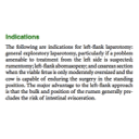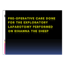 Abomasopexy + Omentopexy.pdf ACEC Guideline for Anaesthesia and Analgesia in Sheep.pdf Anaesthesia & Surgical Preparation.png antibiotics.url ASA GRADE.png background.jpg Bovine Rumenotomy.pdf Catheterization Concept video.url Complications and prognosis.png Constant Rate Infusion Principles.url DRUGS AND CALCULATIONS.docx Fasting .jpg Fasting 2.jpg Fistulation + Cannula Placement.pdf How To Handle And Restrain Sheep.pdf Image H.png Images A-E.png Images F&G.png Incisional Approaches to Laparotomy.url Indcations1.png Indications.png Instruments video.url Inverted L Block.jpg laparotomy contraindications.url laparotomy overview.url Left Flank Approach Schematic.png Lumbosacral Epidural Block.jpg merck's manual.url Methodology Video.url pain management.url Paravertebral Nerve Block.jpg Physical Exam.url Post-op.pdf Post-Operative Care Pictures.jpg PRE-OP care for RIHANNA.pdf Pre Operative care for Rihanna the Sheep.ppt Relevant Anatomy.png Right Flank Anatomy.jpg Right Flank Exploratory Laparotomy.docx Right Flank Exploratory Laparotomy Flow Chart.jpg Right or Left Displaced Abomasum or Abomasal Volvulus.url Surgery Instruments.url Surgical Technique.png Surgical Technique1.png Surgical Technique2.png SurgicalTechnique3.png Suture material.png Suture Materials.url Uses of Right Flank Laparotomy.png wound care.url