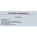 Abomasopexy + Omentopexy.pdf Abomasopexy Complications.JPG Anatomy.JPG Anatomy - Abomasopexy.JPG ASA Grading.JPG Comparative Evaluation of Midventral and Flank Laparotomy Approaches in Goat.url COMPARISON OF RUMINOTOMIES TECHNIQUES IN GOATS.pdf Complete Surgery Pack.JPG Drugs and Surgical Prep - Left Flank Abomasopexy.JPG Economic Considerations.PNG exlap complications.PNG Fasting.JPG Fistulation + Cannula Placement.pdf Indications - Abomasopexy.JPG Indications - Rumenotomy.JPG Instruments.pdf Instruments - Abomasopexy.JPG LDA.url Left Flank Abomasopexy.cmap Left Flank Abomasopexy.url Left Flank Abomasopexy - Intra op.pdf Left Flank Approach - Intra-Op.pdf Left Flank Ex-Lap Flow diagram.JPG Methods of surgical hemostsis.PNG Ovine Restraint.pdf Ovine Ruminal Cannulation.PDF Physical Exam.JPG Post Op - Abomasopexy.pdf Post Op - Rumenotomy.JPG Pre-op rumenotomy.JPG Ride side of ruminant.PNG right flank.PNG Right Flank ex lap.cmap Right flank indication.PNG Right flank surgical technique.PNG Rumen anatomy 1.png Rumen anatomy 2.jpg Rumen Cannulation.pdf Rumenotomy.cmap Rumenotomy IntraOp.pdf Rumenotomy Video.url Small Ruminant Physical Exam.url Surgical hemostasis.PNG Welfare.PNG