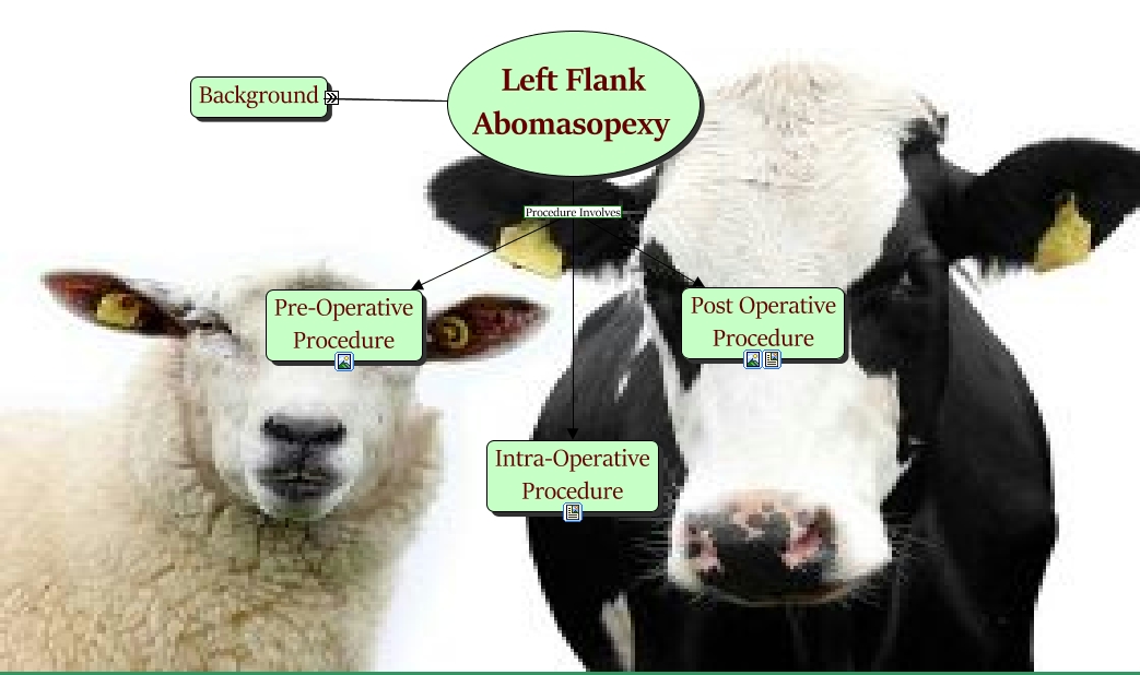 This Concept Map, created with IHMC CmapTools, has information related to: Left Flank Abomasopexy, Left Flank Abomasopexy Procedure Involves Intra-Operative Procedure, Left Flank Abomasopexy Procedure Involves Pre-Operative Procedure, Left Flank Abomasopexy Surgery Required when Indications for Surgery, Left Flank Abomasopexy Procedure Involves Post Operative Procedure, Left Flank Abomasopexy Requires Knowledge of Anatomy