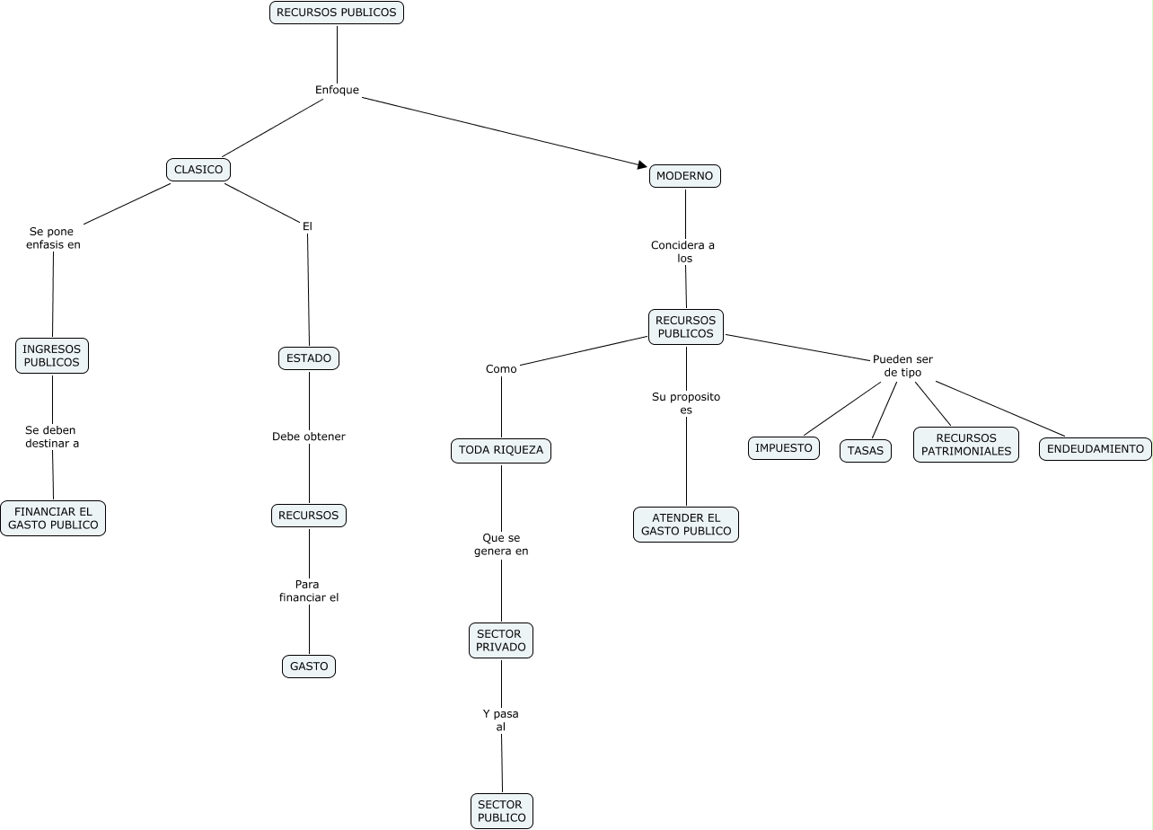 This Concept Map, created with IHMC CmapTools, has information related to: RECURSO PUBLICO 2, INGRESOS PUBLICOS Se deben destinar a FINANCIAR EL GASTO PUBLICO, RECURSOS PUBLICOS Pueden ser de tipo TASAS, RECURSOS Para financiar el GASTO, ESTADO Debe obtener RECURSOS, RECURSOS PUBLICOS Su proposito es ATENDER EL GASTO PUBLICO, CLASICO Se pone enfasis en INGRESOS PUBLICOS, RECURSOS PUBLICOS Pueden ser de tipo IMPUESTO, RECURSOS PUBLICOS Enfoque CLASICO, CLASICO El ESTADO, SECTOR PRIVADO Y pasa al SECTOR PUBLICO, RECURSOS PUBLICOS Pueden ser de tipo RECURSOS PATRIMONIALES, RECURSOS PUBLICOS Como TODA RIQUEZA, TODA RIQUEZA Que se genera en SECTOR PRIVADO, RECURSOS PUBLICOS Enfoque MODERNO, RECURSOS PUBLICOS Pueden ser de tipo ENDEUDAMIENTO, MODERNO Concidera a los RECURSOS PUBLICOS