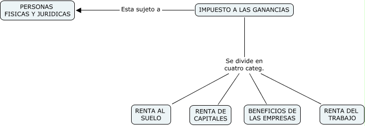 This Concept Map, created with IHMC CmapTools, has information related to: iMP. gANANCIAS, IMPUESTO A LAS GANANCIAS Se divide en cuatro categ. RENTA DEL TRABAJO, IMPUESTO A LAS GANANCIAS Esta sujeto a PERSONAS FISICAS Y JURIDICAS, IMPUESTO A LAS GANANCIAS Se divide en cuatro categ. RENTA AL SUELO, IMPUESTO A LAS GANANCIAS Se divide en cuatro categ. RENTA DE CAPITALES, IMPUESTO A LAS GANANCIAS Se divide en cuatro categ. BENEFICIOS DE LAS EMPRESAS