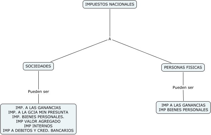 This Concept Map, created with IHMC CmapTools, has information related to: IMPUESTO NACIONALES, PERSONAS FISICAS Pueden ser IMP A LAS GANANCIAS IMP BIENES PERSONALES, IMPUESTOS NACIONALES A PERSONAS FISICAS, SOCIEDADES Pueden ser IMP. A LAS GANANCIAS IMP. A LA GCIA MIN PRESUNTA IMP. BIENES PERSONALES. IMP VALOR AGREGADO IMP INTERNOS IMP A DEBITOS Y CRED. BANCARIOS, IMPUESTOS NACIONALES A SOCIEDADES