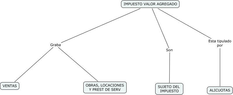 This Concept Map, created with IHMC CmapTools, has information related to: IVA, IMPUESTO VALOR AGREGADO Graba VENTAS, IMPUESTO VALOR AGREGADO Graba OBRAS, LOCACIONES Y PREST DE SERV, IMPUESTO VALOR AGREGADO Esta tipulado por ALICUOTAS, IMPUESTO VALOR AGREGADO Son SUJETO DEL IMPUESTO