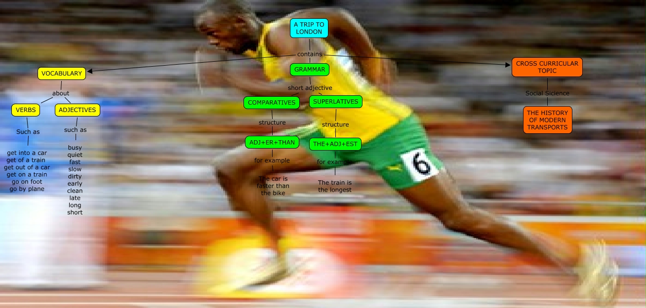 Este Cmap, tiene información relacionada con: A TRIP TO LONDON-ALEJANDRA Y ALEX, VOCABULARY about ADJECTIVES, THE+ADJ+EST for example The train is the longest, CROSS CURRICULAR TOPIC Social Sicience THE HISTORY OF MODERN TRANSPORTS, COMPARATIVES structure ADJ+ER+THAN, VOCABULARY about VERBS, A TRIP TO LONDON contains VOCABULARY, VERBS Such as get into a car get of a train get out of a car get on a train go on foot go by plane, GRAMMAR short adjective SUPERLATIVES, SUPERLATIVES structure THE+ADJ+EST, ADJECTIVES such as busy quiet fast slow dirty early clean late long short, A TRIP TO LONDON contains CROSS CURRICULAR TOPIC, GRAMMAR short adjective COMPARATIVES, A TRIP TO LONDON contains GRAMMAR, ADJ+ER+THAN for example The car is faster than the bike