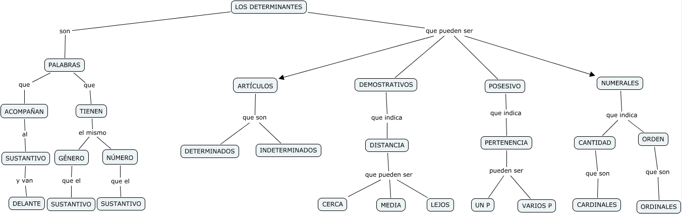 Este Cmap, tiene información relacionada con: LOS DETERMINANTES-(Andrea), ORDEN que son ORDINALES, DISTANCIA que pueden ser LEJOS, SUSTANTIVO y van DELANTE, LOS DETERMINANTES son PALABRAS, PERTENENCIA pueden ser UN P, LOS DETERMINANTES que pueden ser NUMERALES, DISTANCIA que pueden ser CERCA, DEMOSTRATIVOS que indica DISTANCIA, ACOMPAÑAN al SUSTANTIVO, LOS DETERMINANTES que pueden ser POSESIVO, PERTENENCIA pueden ser VARIOS P, LOS DETERMINANTES que pueden ser ARTÍCULOS, TIENEN el mismo NÚMERO, NÚMERO que el SUSTANTIVO, ARTÍCULOS que son INDETERMINADOS, NUMERALES que indica CANTIDAD, LOS DETERMINANTES que pueden ser DEMOSTRATIVOS, NUMERALES que indica ORDEN, DISTANCIA que pueden ser MEDIA, PALABRAS que ACOMPAÑAN