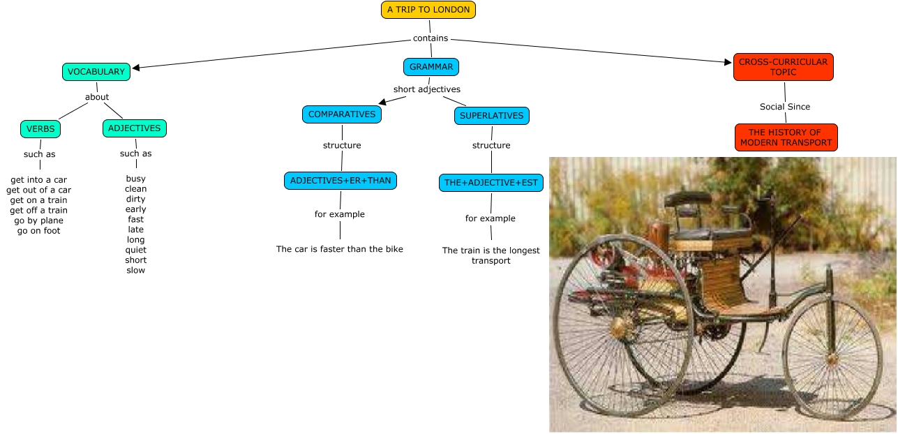 Este Cmap, tiene información relacionada con: A TRIP TO LONDON-Sofía e Irene, COMPARATIVES structure ADJECTIVES+ER+THAN, A TRIP TO LONDON contains GRAMMAR, VOCABULARY about ADJECTIVES, VOCABULARY about VERBS, ADJECTIVES such as busy clean dirty early fast late long quiet short slow, THE+ADJECTIVE+EST for example The train is the longest transport, GRAMMAR short adjectives SUPERLATIVES, GRAMMAR short adjectives COMPARATIVES, SUPERLATIVES structure THE+ADJECTIVE+EST, VERBS such as get into a car get out of a car get on a train get off a train go by plane go on foot, A TRIP TO LONDON contains VOCABULARY, A TRIP TO LONDON contains CROSS-CURRICULAR TOPIC, CROSS-CURRICULAR TOPIC Social Since THE HISTORY OF MODERN TRANSPORT, ADJECTIVES+ER+THAN for example The car is faster than the bike