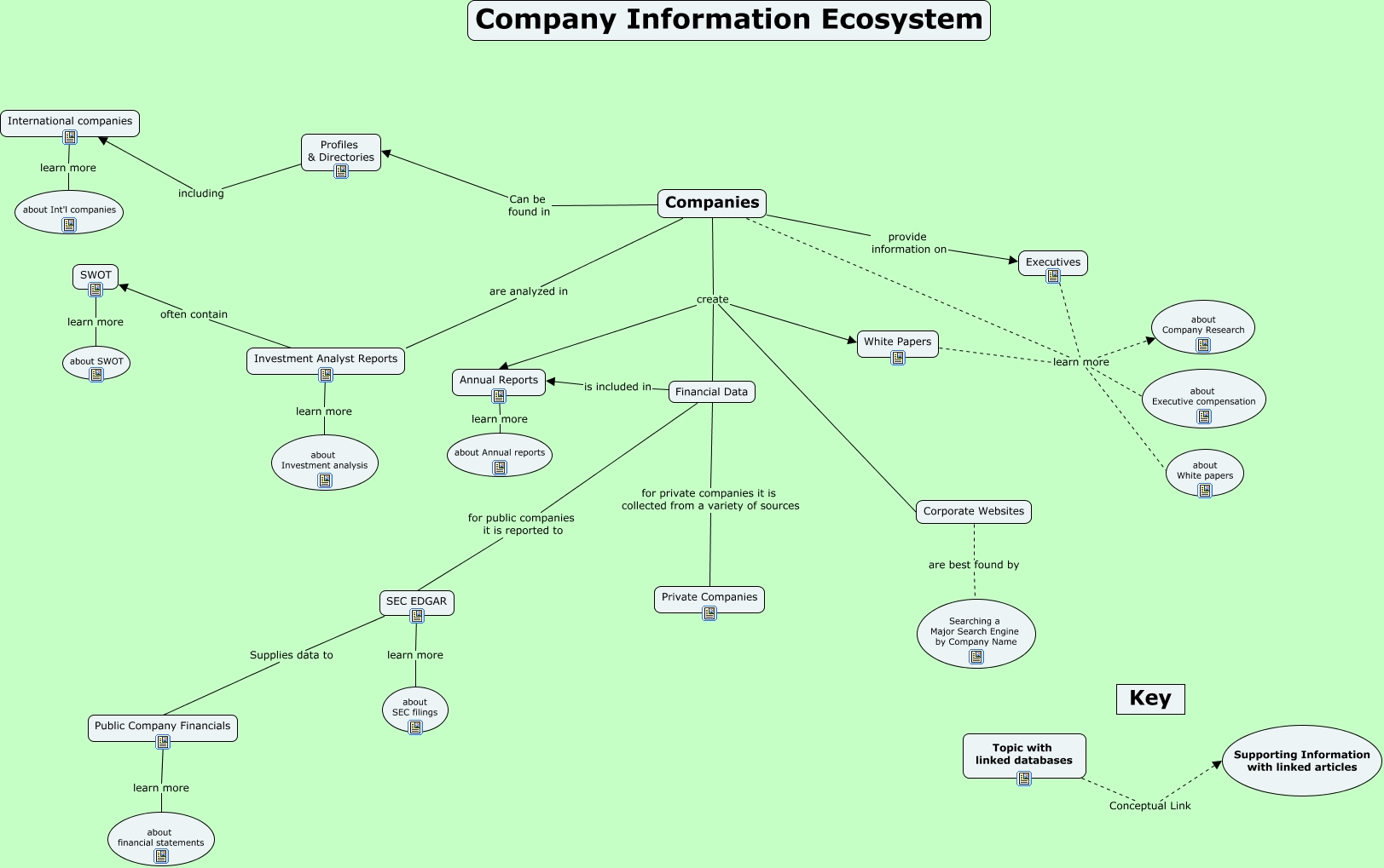 This Concept Map, created with IHMC CmapTools, has information related to: Company, Companies learn more about White papers, Public Company Financials learn more about financial statements, Corporate Websites are best found by Searching a Major Search Engine by Company Name, Financial Data for private companies it is collected from a variety of sources Private Companies, Companies learn more about Company Research, Companies create Annual Reports, Companies learn more about Executive compensation, Companies provide information on Executives, Executives learn more about White papers, Annual Reports learn more about Annual reports, Companies create Corporate Websites, Financial Data for public companies it is reported to SEC EDGAR, White Papers learn more about Company Research, Companies create Financial Data, Companies create White Papers, Topic with linked databases Conceptual Link Supporting Information with linked articles, SWOT learn more about SWOT, SEC EDGAR Supplies data to Public Company Financials, White Papers learn more about White papers, Profiles & Directories including International companies