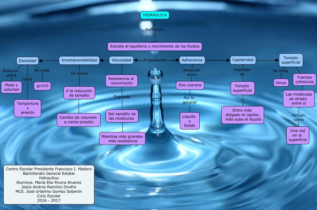 Este Cmap, tiene información relacionada con: Elia y Jesús, Viscosidad ???? Resistencia al movimiento, Densidad Varía Tempertura y presión, Resistencia al movimiento Depende Del tamaño de las moléculas, Capilaridad Depende de Tensión superficial, Del tamaño de las moléculas ???? Mientras más grandes más resistencia, Estudia el equilibrio y movimiento de los fluidos Propiedades Adherencia, Densidad Relación entre Masa y volumen, Dos cuerpos Por lo general Líquido y Solido, Tensión superficial ???? Entre más delgado el capilar, más sube el líquido, Tensión superficial ???? Fuerzas cohesivas, Tensión superficial Se mide Dinas, Estudia el equilibrio y movimiento de los fluidos Propiedades Viscosidad, Densidad Se mide g/cm3, Fuerzas cohesivas ???? Las moléculas se atraen entre sí, Las moléculas se atraen entre sí Actuan como Una red en la superficie, A la reducción de tamaño ???? Cambio de volumen a cierta presión, HIDRAULICA Definición Estudia el equilibrio y movimiento de los fluidos, Estudia el equilibrio y movimiento de los fluidos Propiedades Incomprensibilidad, Estudia el equilibrio y movimiento de los fluidos Propiedades Capilaridad, Adherencia Atracción entre Dos cuerpos