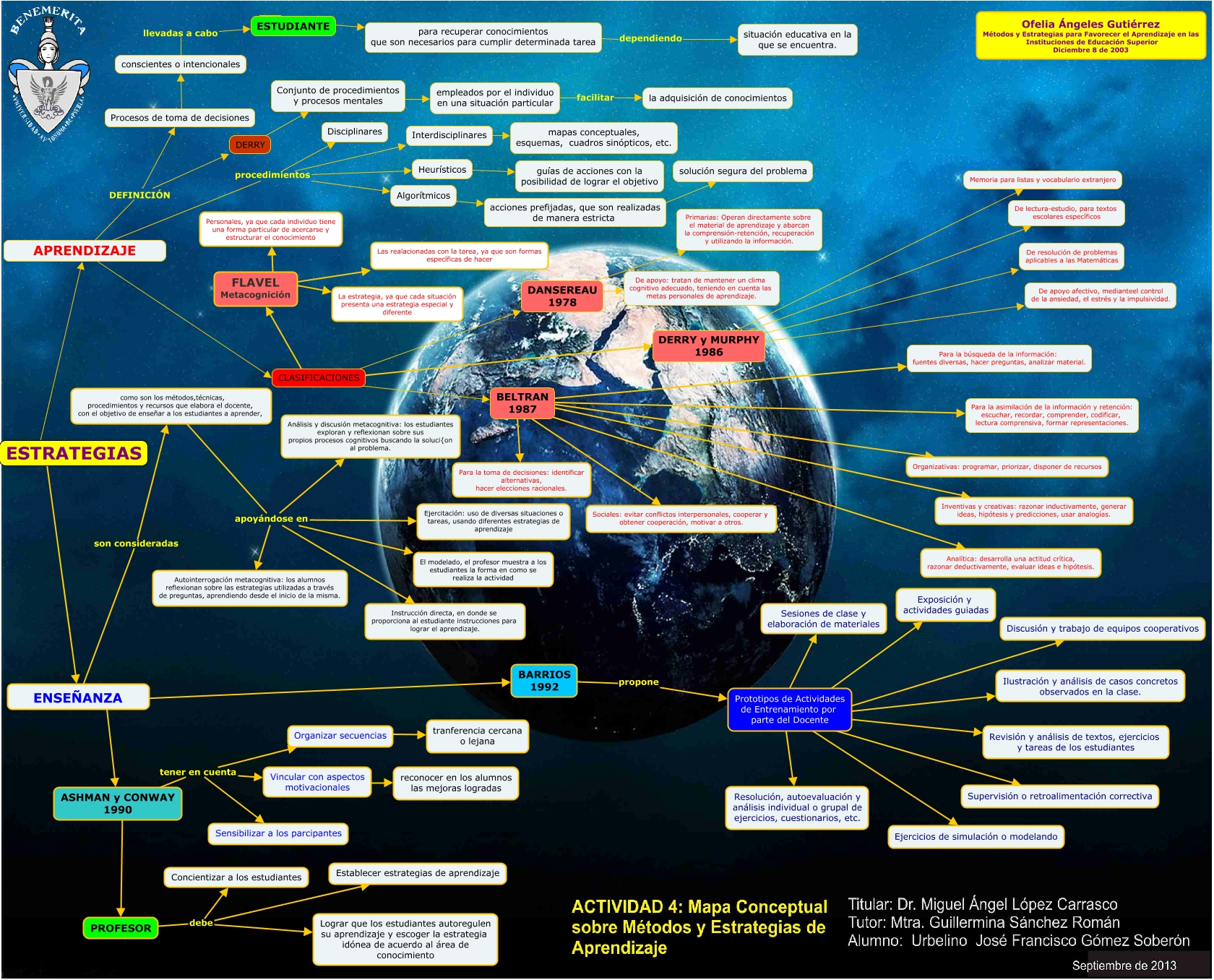Este Cmap, tiene información relacionada con: actividad 4, APRENDIZAJE DEFINICIÓN DERRY, APRENDIZAJE DEFINICIÓN Procesos de toma de decisiones, ENSEÑANZA ???? BARRIOS 1992, ESTRATEGIAS ???? APRENDIZAJE, APRENDIZAJE procedimientos Disciplinares, como son los métodos,técnicas, procedimientos y recursos que elabora el docente, con el objetivo de enseñar a los estudiantes a aprender, apoyándose en El modelado, el profesor muestra a los estudiantes la forma en como se realiza la actividad, DANSEREAU 1978 ???? Primarias: Operan directamente sobre el material de aprendizaje y abarcan la comprensión-retención, recuperación y utilizando la información., DERRY y MURPHY 1986 ???? Memoria para listas y vocabulario extranjero, Prototipos de Actividades de Entrenamiento por parte del Docente ???? Resolución, autoevaluación y análisis individual o grupal de ejercicios, cuestionarios, etc., como son los métodos,técnicas, procedimientos y recursos que elabora el docente, con el objetivo de enseñar a los estudiantes a aprender, apoyándose en Instrucción directa, en donde se proporciona al estudiante instrucciones para lograr el aprendizaje., FLAVEL Metacognición ???? Las realacionadas con la tarea, ya que son formas específicas de hacer, ASHMAN y CONWAY 1990 ???? PROFESOR, CLASIFICACIONES ???? DERRY y MURPHY 1986, CLASIFICACIONES ???? BELTRAN 1987, Conjunto de procedimientos y procesos mentales ???? empleados por el individuo en una situación particular, BELTRAN 1987 ???? Inventivas y creativas: razonar inductivamente, generar ideas, hipótesis y predicciones, usar analogías., ASHMAN y CONWAY 1990 tener en cuenta Organizar secuencias, Procesos de toma de decisiones ???? conscientes o intencionales, CLASIFICACIONES ???? FLAVEL Metacognición, ESTUDIANTE ???? para recuperar conocimientos que son necesarios para cumplir determinada tarea