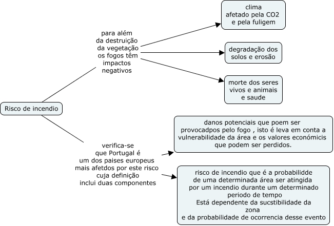 Esse mapa conceitual, produzido no IHMC CmapTools, tem a informação relacionada a: 3.1-risco de incendio, Risco de incendio para além da destruição da vegetação os fogos têm impactos negativos degradação dos solos e erosão, Risco de incendio para além da destruição da vegetação os fogos têm impactos negativos clima afetado pela CO2 e pela fuligem, Risco de incendio para além da destruição da vegetação os fogos têm impactos negativos morte dos seres vivos e animais e saude, Risco de incendio verifica-se que Portugal é um dos paises europeus mais afetdos por este risco cuja definição inclui duas componentes danos potenciais que poem ser provocadpos pelo fogo , isto é leva em conta a vulnerabilidade da área e os valores económicis que podem ser perdidos., Risco de incendio verifica-se que Portugal é um dos paises europeus mais afetdos por este risco cuja definição inclui duas componentes risco de incendio que é a probabilidde de uma determinada área ser atingida por um incendio durante um determinado periodo de tempo Está dependente da sucstibilidade da zona e da probabilidade de ocorrencia desse evento