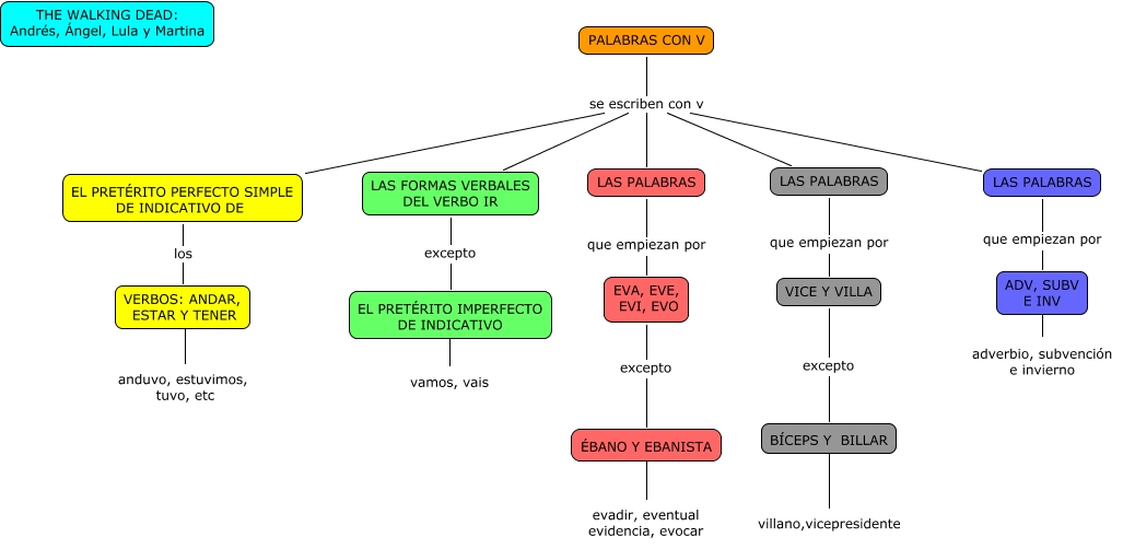 Este Cmap, tiene información relacionada con: PALABRAS CON V, EL PRETÉRITO IMPERFECTO DE INDICATIVO vamos, vais, EVA, EVE, EVI, EVO excepto ÉBANO Y EBANISTA, BÍCEPS Y BILLAR ???? villano,vicepresidente, ADV, SUBV E INV adverbio, subvención e invierno, LAS PALABRAS que empiezan por VICE Y VILLA, VICE Y VILLA excepto BÍCEPS Y BILLAR, PALABRAS CON V se escriben con v EL PRETÉRITO PERFECTO SIMPLE DE INDICATIVO DE, PALABRAS CON V se escriben con v LAS PALABRAS, PALABRAS CON V se escriben con v LAS PALABRAS, LAS FORMAS VERBALES DEL VERBO IR excepto EL PRETÉRITO IMPERFECTO DE INDICATIVO, EL PRETÉRITO PERFECTO SIMPLE DE INDICATIVO DE los VERBOS: ANDAR, ESTAR Y TENER, ÉBANO Y EBANISTA ???? evadir, eventual evidencia, evocar, PALABRAS CON V se escriben con v LAS FORMAS VERBALES DEL VERBO IR, LAS PALABRAS que empiezan por EVA, EVE, EVI, EVO, PALABRAS CON V se escriben con v LAS PALABRAS, VERBOS: ANDAR, ESTAR Y TENER ???? anduvo, estuvimos, tuvo, etc, LAS PALABRAS que empiezan por ADV, SUBV E INV