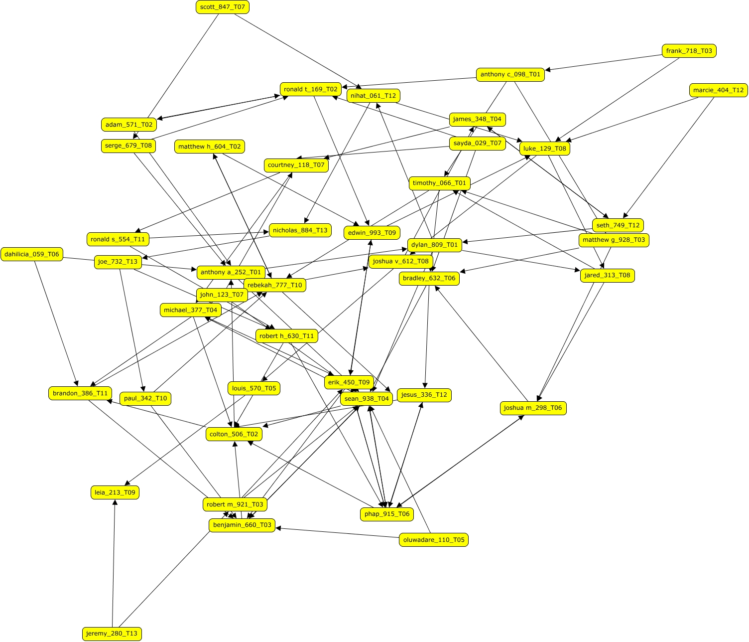 This Concept Map, created with IHMC CmapTools, has information related to: cohort 2 with names, anthony c_098_T01 matthew g_928_T03, phap_915_T06 sean_938_T04, luke_129_T08 joshua v_612_T08, marcie_404_T12 seth_749_T12, colton_506_T02 brandon_386_T11, courtney_118_T07 michael_377_T04, marcie_404_T12 luke_129_T08, robert h_630_T11 phap_915_T06, benjamin_660_T03 sean_938_T04, benjamin_660_T03 colton_506_T02, anthony a_252_T01 dylan_809_T01, serge_679_T08 ronald t_169_T02, jesus_336_T12 phap_915_T06, erik_450_T09 benjamin_660_T03, robert m_921_T03 erik_450_T09, nicholas_884_T13 joe_732_T13, brandon_386_T11 rebekah_777_T10, ronald s_554_T11 nicholas_884_T13, frank_718_T03 luke_129_T08, timothy_066_T01 bradley_632_T06