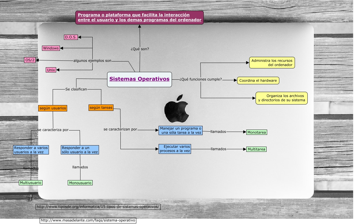 Este Cmap, tiene información relacionada con: sistema operativo, Sistemas Operativos ¿Qué son? Programa o plataforma que facilita la interacción entre el usuario y los demas programas del ordenador, Manejar un programa o una sóla tarea a la vez llamados Monotarea, Sistemas Operativos ¿Qué funciones cumple? Administra los recursos del ordenador, Sistemas Operativos algunos ejemplos son Unix, según tareas se caracterizan por Manejar un programa o una sóla tarea a la vez, Responder a un sólo usuario a la vez llamados Monousuario, Sistemas Operativos ¿Qué funciones cumple? Organiza los archivos y directorios de su sistema, Sistemas Operativos algunos ejemplos son D.O.S., Sistemas Operativos algunos ejemplos son Windows, Sistemas Operativos Se clasifican según usuarios, Ejecutar varios procesos a la vez llamados Multitarea, Sistemas Operativos ¿Qué funciones cumple? Coordina el hardware, Responder a varios usuarios a la vez llamados Multiusuario, según usuarios se caracteriza por Responder a varios usuarios a la vez, Sistemas Operativos Se clasifican según tareas, Sistemas Operativos algunos ejemplos son OS/2, según tareas se caracterizan por Ejecutar varios procesos a la vez, según usuarios se caracteriza por Responder a un sólo usuario a la vez
