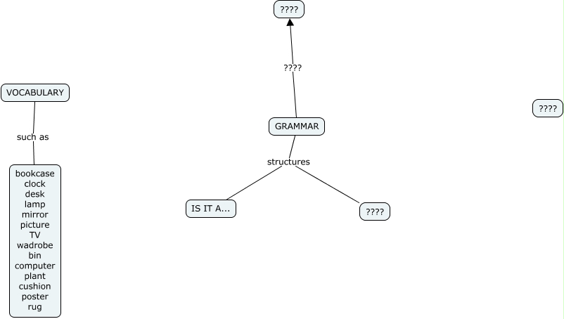 Este Cmap, tiene información relacionada con: AT FLAT NUMBER 6 (IRIA Y MARTIN), GRAMMAR structures IS IT A..., GRAMMAR structures ????, VOCABULARY such as bookcase clock desk lamp mirror picture TV wadrobe bin computer plant cushion poster rug, GRAMMAR ???? ????