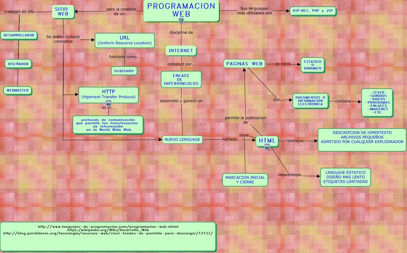 Este Cmap, tiene información relacionada con: programacion web 2, HTML permite la publicacion de PAGINAS WEB, PROGRAMACION WEB Sus lenguages más utilizados son ASP.NET, PHP y JSP, DOCUMENTOS O INFORMACION ELECTRONICA contiene -TEXTO -SONIDOS -VIDEOS -PROGRAMAS -ENLACES -IMAGENES -ETC., HTTP (Hipertext Transfer Protocol) es el... protocolo de comunicación que permite las transferencias de información en la World Wide Web., HTML Ventajas DESCRIPCION DE HIPERTEXTO ARCHIVOS PEQUEÑOS ADMITIDO POR CUALQUIER EXPLODRADOR, NUEVO LENGUAGE llamado... HTML, PAGINAS WEB de estilo ESTATICO O DINAMICO, SITIO WEB Se deben conocer conceptos URL (Uniform Resource Locators), PROGRAMACION WEB para la creación de un... SITIO WEB, INTERNET comenzó por... ENLACE DE HIPERVINCULOS, SITIO WEB trabajan en ello DISEÑADOR, URL (Uniform Resource Locators) funciona como... localizador, PROGRAMACION WEB disciplina de INTERNET, SITIO WEB Se deben conocer conceptos NUEVO LENGUAGE, HTML Desventajas LENGUAJE ESTATICO DISEÑO MAS LENTO ETIQUETAS LIMITADAS, SITIO WEB trabajan en ello WEBMASTER, SITIO WEB Se deben conocer conceptos HTTP (Hipertext Transfer Protocol), SITIO WEB trabajan en ello DESARROLLADOR, PAGINAS WEB Son.. DOCUMENTOS O INFORMACION ELECTRONICA, ENLACE DE HIPERVINCULOS desarrolló y generó un NUEVO LENGUAGE
