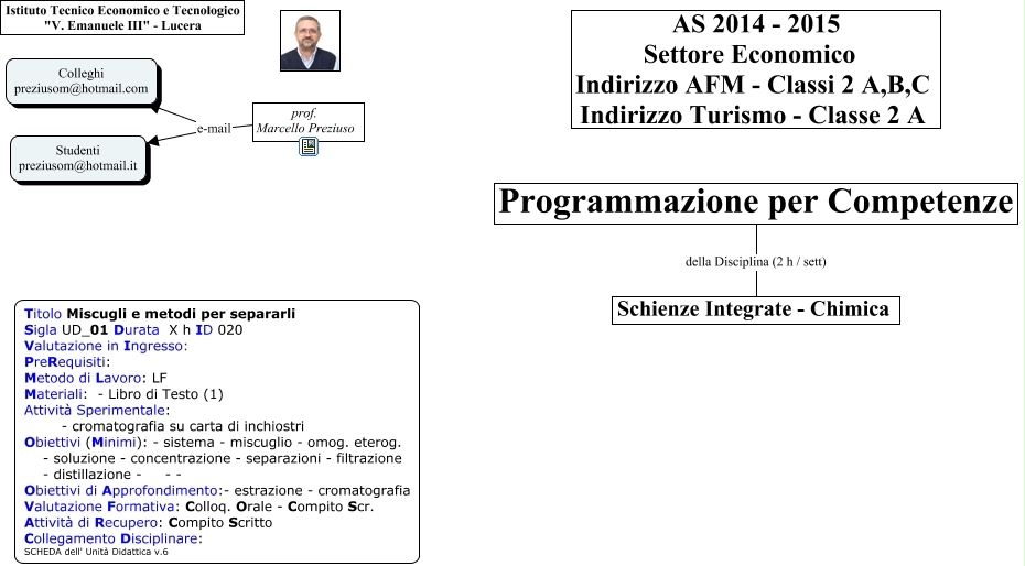 Questa Cmap, creata con IHMC CmapTools, contiene informazioni relative a: UdA_01 - Miscugli e Metodi_Sep, Programmazione per Competenze della Disciplina (2 h / sett) Schienze Integrate - Chimica, prof. Marcello Preziuso e-mail Colleghi preziusom@hotmail.com, prof. Marcello Preziuso e-mail Studenti preziusom@hotmail.it