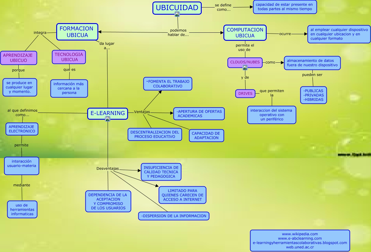 Este Cmap, tiene información relacionada con: ubicuidad, E-LEARNING Desventajas LIMITADO PARA QUIENES CARECEN DE ACCESO A INTERNET, E-LEARNING Desventajas -DISPERSION DE LA INFORMACION, E-LEARNING Ventajas -FOMENTA EL TRABAJO COLABORATIVO, UBICUIDAD podemos hablar de... COMPUTACION UBICUA, CLOUDS/NUBES y de DRIVES, TECNOLOGIA UBICUA que es información más cercana a la persona, FORMACION UBICUA integra APRENDIZAJE UBICUO, CLOUDS/NUBES como almacenamiento de datos fuera de nuestro dispositivo, FORMACION UBICUA da lugar a... E-LEARNING, almacenamiento de datos fuera de nuestro dispositivo pueden ser -PUBLICAS -PRIVADAS -HIBRIDAS, E-LEARNING al que definimos como... APRENDIZAJE ELECTRONICO, APRENDIZAJE UBICUO porque se produce en cualquier lugar y momento., E-LEARNING Ventajas CAPACIDAD DE ADAPTACION, E-LEARNING Ventajas -APERTURA DE OFERTAS ACADEMICAS, E-LEARNING Ventajas DESCENTRALIZACION DEL PROCESO EDUCATIVO, COMPUTACION UBICUA permite el uso de CLOUDS/NUBES, UBICUIDAD se define como... capacidad de estar presente en todas partes al mismo tiempo, E-LEARNING Desventajas INSUFICIENCIA DE CALIDAD TECNICA Y PEDAGOGICA, COMPUTACION UBICUA ocurre al emplear cualquier dispositivo en cualquier ubicacion y en cualquier formato, E-LEARNING Desventajas DEPENDENCIA DE LA ACEPTACION Y COMPROMISO DE LOS USUARIOS