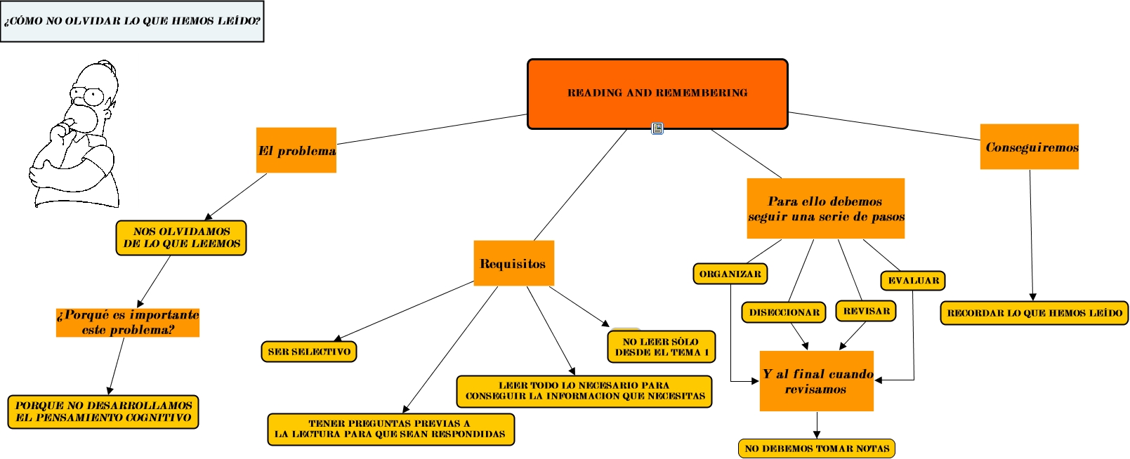 Este Cmap, tiene información relacionada con: Pablo Fleitas, READING AND REMEMBERING Para ello debemos seguir una serie de pasos ORGANIZAR, READING AND REMEMBERING Requisitos LEER TODO LO NECESARIO PARA CONSEGUIR LA INFORMACION QUE NECESITAS, ORGANIZAR Y al final cuando revisamos NO DEBEMOS TOMAR NOTAS, REVISAR Y al final cuando revisamos NO DEBEMOS TOMAR NOTAS, NOS OLVIDAMOS DE LO QUE LEEMOS ¿Porqué es importante este problema? PORQUE NO DESARROLLAMOS EL PENSAMIENTO COGNITIVO, READING AND REMEMBERING El problema NOS OLVIDAMOS DE LO QUE LEEMOS, EVALUAR Y al final cuando revisamos NO DEBEMOS TOMAR NOTAS, READING AND REMEMBERING Para ello debemos seguir una serie de pasos DISECCIONAR, READING AND REMEMBERING Requisitos TENER PREGUNTAS PREVIAS A LA LECTURA PARA QUE SEAN RESPONDIDAS, READING AND REMEMBERING Conseguiremos RECORDAR LO QUE HEMOS LEÍDO, READING AND REMEMBERING Para ello debemos seguir una serie de pasos EVALUAR, READING AND REMEMBERING Para ello debemos seguir una serie de pasos REVISAR, READING AND REMEMBERING Requisitos SER SELECTIVO, READING AND REMEMBERING Requisitos ????, DISECCIONAR Y al final cuando revisamos NO DEBEMOS TOMAR NOTAS