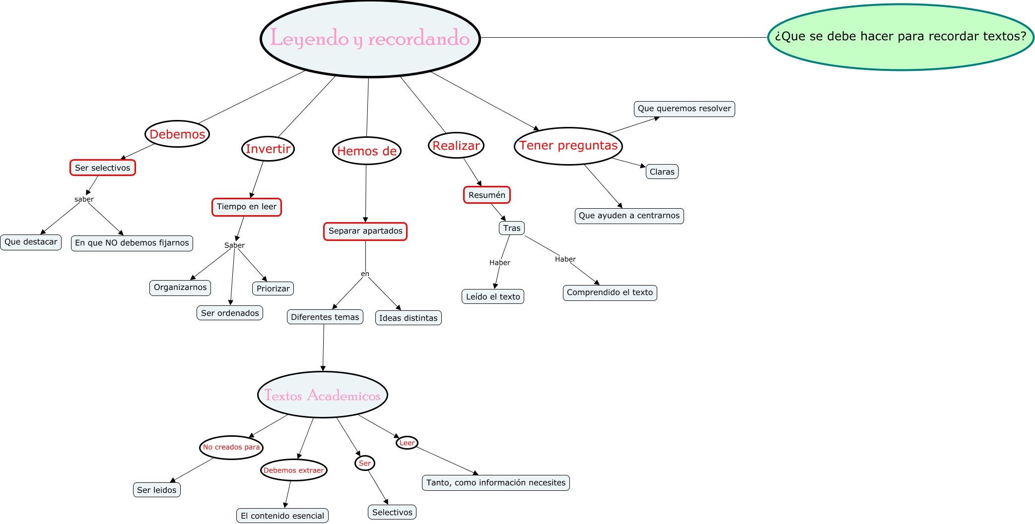 Este Cmap, tiene información relacionada con: Cmap Raquel González Gutiérrez, Tiempo en leer Saber Organizarnos, Leyendo y recordando Tener preguntas Que ayuden a centrarnos, Separar apartados en Ideas distintas, Ser selectivos saber Que destacar, Textos Academicos Leer Tanto, como información necesites, Tras Haber Leído el texto, Tras Haber Comprendido el texto, Tiempo en leer Saber Ser ordenados, ¿Que se debe hacer para recordar textos? ???? Leyendo y recordando, Textos Academicos No creados para Ser leidos, Leyendo y recordando Tener preguntas Que queremos resolver, Textos Academicos Debemos extraer El contenido esencial, Ser selectivos saber En que NO debemos fijarnos, Textos Academicos Ser Selectivos, Diferentes temas ???? Textos Academicos, Leyendo y recordando Realizar Resumén, Leyendo y recordando Invertir Tiempo en leer, Separar apartados en Diferentes temas, Leyendo y recordando Debemos Ser selectivos, Leyendo y recordando Hemos de Separar apartados