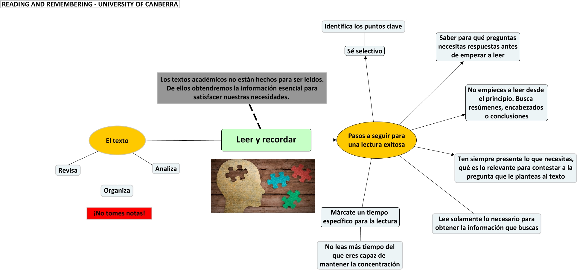 Este Cmap, tiene información relacionada con: Mapita, El texto ???? Organiza, El texto ???? Leer y recordar, El texto ???? Revisa, Leer y recordar ???? Pasos a seguir para una lectura exitosa, Pasos a seguir para una lectura exitosa ???? No empieces a leer desde el principio. Busca resúmenes, encabezados o conclusiones, Pasos a seguir para una lectura exitosa ???? Saber para qué preguntas necesitas respuestas antes de empezar a leer, Márcate un tiempo específico para la lectura ???? No leas más tiempo del que eres capaz de mantener la concentración, Pasos a seguir para una lectura exitosa ???? Ten siempre presente lo que necesitas, qué es lo relevante para contestar a la pregunta que le planteas al texto, Pasos a seguir para una lectura exitosa ???? Sé selectivo, Sé selectivo ???? Identifica los puntos clave, El texto ???? Analiza, Pasos a seguir para una lectura exitosa ???? Márcate un tiempo específico para la lectura, Los textos académicos no están hechos para ser leídos. De ellos obtendremos la información esencial para satisfacer nuestras necesidades. ???? Leer y recordar, Pasos a seguir para una lectura exitosa ???? Lee solamente lo necesario para obtener la información que buscas