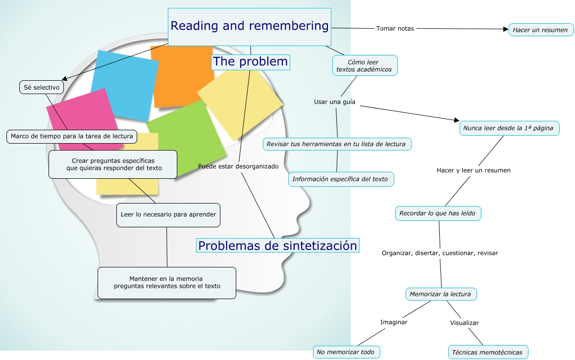 Este Cmap, tiene información relacionada con: PalomaSantana_READING_AND_REMEMBERING, Revisar tus herramientas en tu lista de lectura ???? Información específica del texto, Nunca leer desde la 1ª página Hacer y leer un resumen Recordar lo que has leído, Cómo leer textos académicos ???? Reading and remembering, Memorizar la lectura Visualizar Técnicas memotécnicas, ???? ???? Sé selectivo, Sé selectivo Marco de tiempo para la tarea de lectura, Marco de tiempo para la tarea de lectura Crear preguntas específicas que quieras responder del texto, Crear preguntas específicas que quieras responder del texto ???? Leer lo necesario para aprender, The problem ???? Reading and remembering, Reading and remembering Tomar notas Hacer un resumen, Leer lo necesario para aprender ???? Mantener en la memoria preguntas relevantes sobre el texto, The problem Puede estar desorganizado Problemas de sintetización, Memorizar la lectura Imaginar No memorizar todo, Recordar lo que has leído Organizar, disertar, cuestionar, revisar Memorizar la lectura, Cómo leer textos académicos Usar una guía Revisar tus herramientas en tu lista de lectura, Cómo leer textos académicos Usar una guía Nunca leer desde la 1ª página