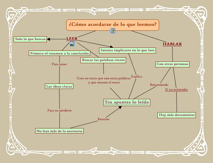 Cette carte de concepts créée avec IHMC CmapTools traite de: Dumoulin_Clémentine, Con otras personas Si no entiendes Hay más documentos, ¿Cómo acordarse de lo que leemos? LEER Solo lo que buscas, Intenta implicarte en lo que lees Explica Sin apuntes lo leído, Las ideas claras Para no perderte No leas más de lo necesario, ¿Cómo acordarse de lo que leemos? LEER Buscar las palabras claves, ¿Cómo acordarse de lo que leemos? HABLAR Con otras personas, No leas más de lo necesario Resume Sin apuntes lo leído, ¿Cómo acordarse de lo que leemos? LEER Intenta implicarte en lo que lees, Con otras personas Resumiendo Sin apuntes lo leído, ¿Cómo acordarse de lo que leemos? LEER Primero el resumen o la conclusión, Buscar las palabras claves Crea un texto que une estas palabras y que resume el texto Sin apuntes lo leído, Primero el resumen o la conclusión Para tener Las ideas claras
