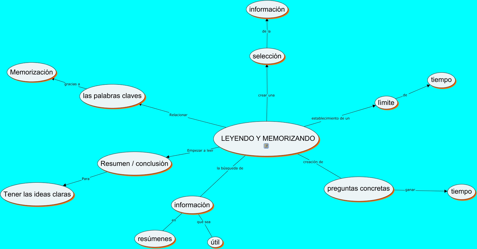 Este Cmap, tiene información relacionada con: trabajo de grupoo, LEYENDO Y MEMORIZANDO Relacionar las palabras claves, límite de tiempo, información en resúmenes, Resumen / conclusión Para Tener las ideas claras, las palabras claves gracias a Memorización, preguntas concretas ganar tiempo, LEYENDO Y MEMORIZANDO la búsqueda de información, selección de la información, LEYENDO Y MEMORIZANDO creación de preguntas concretas, LEYENDO Y MEMORIZANDO Empezar a leer Resumen / conclusión, LEYENDO Y MEMORIZANDO establecimiento de un límite, información que sea útil, LEYENDO Y MEMORIZANDO crear una selección