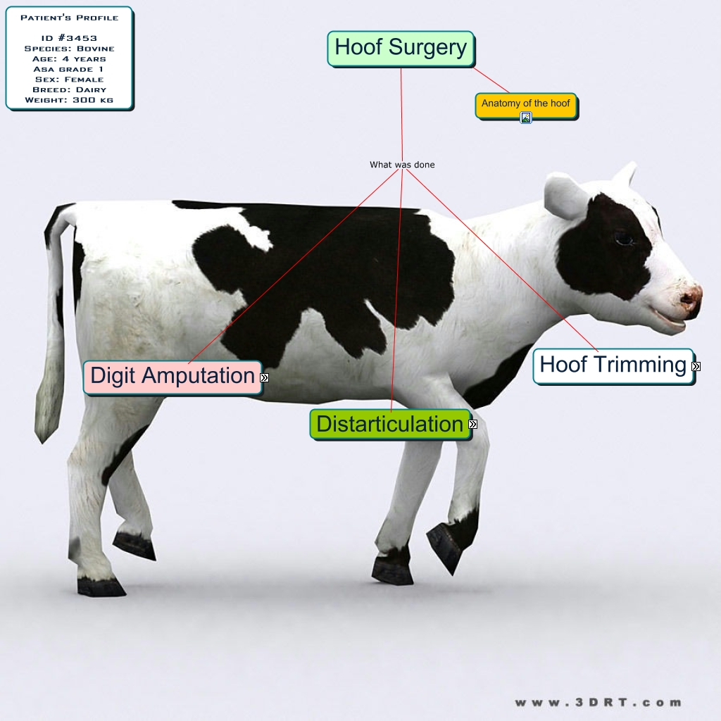 This Concept Map, created with IHMC CmapTools, has information related to: Lab 12 Hoof, Pre op includes Nerve Blocks [scroll over notes], Equipments 2 sets Power Tools, Equipments 2 sets Hand Tools, Hoof trimming includes the following Procedure [scroll over note], Preoperative Why Indications (scroll over note), Preoperative How Instrumentation (scroll over note), Preoperative What Relevant Anatomy, Hoof Surgery What was done Amputation of a Digit, Hoof Surgery Anatomy of the hoof, Pre op consist of Intra op, Hoof Surgery What was done Hoof trimming, Amputation of a Digit Procedures Postoperative, Hoof trimming includes the following Equipments, Pre operative includes Preanaesthetic drugs, Hoof trimming includes the following Anatomy, Prognosis (scroll over note) What Postoperative, Client information (scroll over note) How Postoperative, Amputation of a Digit Procedures Intraoperative, Anaesthesia and Sedation (scroll over note) Emergency Drugs, Preoperative Why Contraindications (scroll over note)