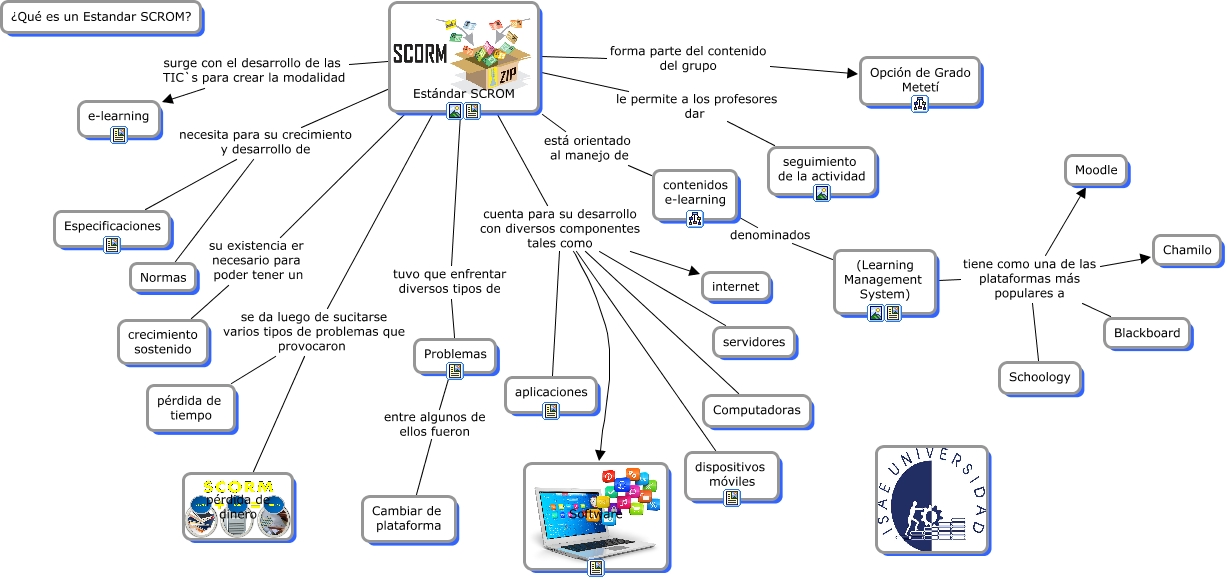 Este Cmap, tiene información relacionada con: Estándar SCROM, (Learning Management System) tiene como una de las plataformas más populares a Moodle, Estándar SCROM surge con el desarrollo de las TIC`s para crear la modalidad e-learning, (Learning Management System) tiene como una de las plataformas más populares a Blackboard, Estándar SCROM está orientado al manejo de contenidos e-learning, Estándar SCROM se da luego de sucitarse varios tipos de problemas que provocaron pérdida de tiempo, Estándar SCROM cuenta para su desarrollo con diversos componentes tales como dispositivos móviles, Estándar SCROM cuenta para su desarrollo con diversos componentes tales como internet, Estándar SCROM forma parte del contenido del grupo Opción de Grado Metetí, Estándar SCROM tuvo que enfrentar diversos tipos de Problemas, (Learning Management System) tiene como una de las plataformas más populares a Schoology, Estándar SCROM se da luego de sucitarse varios tipos de problemas que provocaron pérdida de dinero, Estándar SCROM le permite a los profesores dar seguimiento de la actividad, Estándar SCROM cuenta para su desarrollo con diversos componentes tales como servidores, Estándar SCROM cuenta para su desarrollo con diversos componentes tales como aplicaciones, contenidos e-learning denominados (Learning Management System), Estándar SCROM necesita para su crecimiento y desarrollo de Especificaciones, Estándar SCROM su existencia er necesario para poder tener un crecimiento sostenido, Estándar SCROM cuenta para su desarrollo con diversos componentes tales como Computadoras, Estándar SCROM cuenta para su desarrollo con diversos componentes tales como Software, Estándar SCROM necesita para su crecimiento y desarrollo de Normas