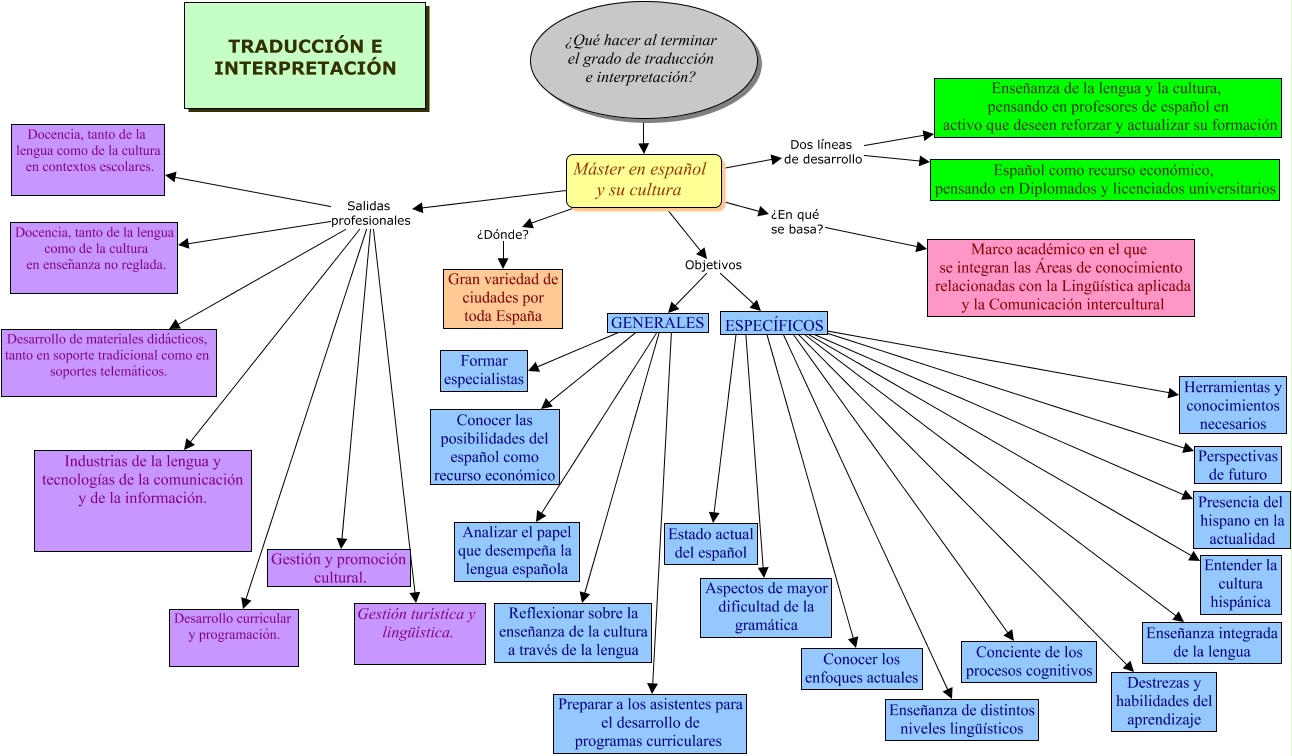 Este Cmap, tiene información relacionada con: TFC, Máster en español y su cultura Objetivos GENERALES, ESPECÍFICOS ???? Herramientas y conocimientos necesarios, ESPECÍFICOS ???? Presencia del hispano en la actualidad, Máster en español y su cultura Salidas profesionales Industrias de la lengua y tecnologías de la comunicación y de la información., Máster en español y su cultura Dos líneas de desarrollo Español como recurso económico, pensando en Diplomados y licenciados universitarios, ESPECÍFICOS ???? Perspectivas de futuro, ESPECÍFICOS ???? Estado actual del español, Máster en español y su cultura ¿En qué se basa? Marco académico en el que se integran las Áreas de conocimiento relacionadas con la Lingüística aplicada y la Comunicación intercultural, ESPECÍFICOS ???? Conocer los enfoques actuales, ¿Qué hacer al terminar el grado de traducción e interpretación? ???? Máster en español y su cultura, Máster en español y su cultura Dos líneas de desarrollo Enseñanza de la lengua y la cultura, pensando en profesores de español en activo que deseen reforzar y actualizar su formación, ESPECÍFICOS ???? Destrezas y habilidades del aprendizaje, GENERALES ???? Reflexionar sobre la enseñanza de la cultura a través de la lengua, ESPECÍFICOS ???? Conciente de los procesos cognitivos, GENERALES ???? Conocer las posibilidades del español como recurso económico, GENERALES ???? Formar especialistas, Máster en español y su cultura Salidas profesionales Docencia, tanto de la lengua como de la cultura en contextos escolares., Máster en español y su cultura ¿Dónde? Gran variedad de ciudades por toda España, ESPECÍFICOS ???? Aspectos de mayor dificultad de la gramática, Máster en español y su cultura Salidas profesionales Docencia, tanto de la lengua como de la cultura en enseñanza no reglada.