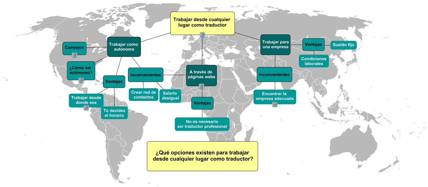 This Concept Map, created with IHMC CmapTools, has information related to: Trabajo Fin de Curso, Ventajas ???? Tú decides el horario, Trabajar desde cualquier lugar como traductor Trabajar como autónomo Inconvenientes, Trabajar desde cualquier lugar como traductor Trabajar como autónomo Ventajas, Trabajar desde cualquier lugar como traductor A través de páginas webs Ventajas, Trabajar desde cualquier lugar como traductor A través de páginas webs Inconvenientes, Trabajar desde cualquier lugar como traductor Trabajar para una empresa Inconvenientes, Trabajar desde cualquier lugar como traductor Trabajar como autónomo ¿Cómo ser autónomo?, Trabajar desde cualquier lugar como traductor Trabajar para una empresa Ventajas, Trabajar desde cualquier lugar como traductor Trabajar como autónomo Consejos, Ventajas ???? Condiciones laborales, Inconvenientes ???? Encontrar la empresa adecuada, Inconvenientes ???? Crear red de contactos, Inconvenientes ???? Salario desigual, Ventajas ???? No es necesario ser traductor profesional, Ventajas ???? Trabajar desde donde sea, Ventajas ???? Sueldo fijo