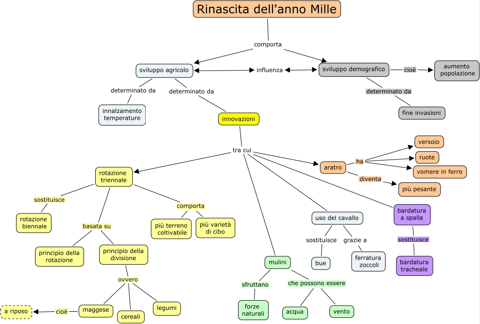 Questa Cmap, creata con IHMC CmapTools, contiene informazioni relative a: ripresa_mille, uso del cavallo sostituisce bue, sviluppo agricolo determinato da innalzamento temperature, Rinascita dell'anno Mille comporta sviluppo agricolo, innovazioni tra cui uso del cavallo, principio della divisione ovvero legumi, mulini che possono essere vento, sviluppo demografico determinato da fine invasioni, aratro ha vomere in ferro, rotazione triennale sostituisce rotazione biennale, uso del cavallo grazie a ferratura zoccoli, rotazione triennale basata su principio della divisione, sviluppo demografico cioè aumento popolazione, bardatura a spalla sostituisce bardatura tracheale, Rinascita dell'anno Mille comporta sviluppo demografico, rotazione triennale comporta più varietà di cibo, maggese cioè a riposo, innovazioni tra cui mulini, aratro ha versoio, principio della divisione ovvero maggese, innovazioni tra cui rotazione triennale
