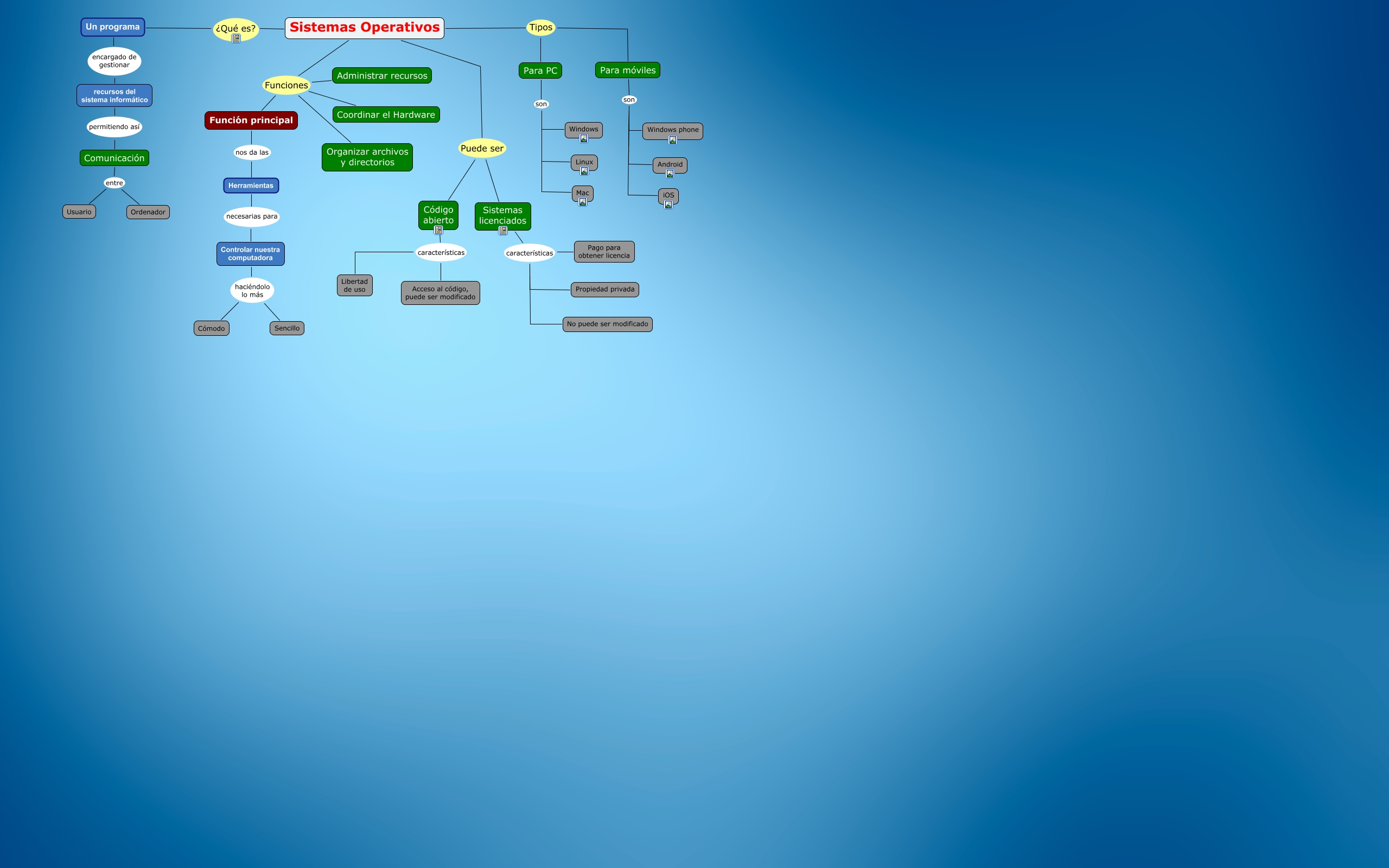 This Concept Map, created with IHMC CmapTools, has information related to: Sistemas operativos, Sistemas Operativos Tipos Para PC, Para móviles son iOS, Para PC son Windows, Herramientas necesarias para Controlar nuestra computadora, Para PC son Mac, Sistemas Operativos Puede ser Sistemas licenciados, Comunicación entre Ordenador, Código abierto características Libertad de uso, Para móviles son Windows phone, Para PC son Linux, Sistemas licenciados características Propiedad privada, Para móviles son Android, Controlar nuestra computadora haciéndolo lo más Cómodo, recursos del sistema informático permitiendo así Comunicación, Sistemas licenciados características Pago para obtener licencia, Sistemas Operativos ¿Qué es? Un programa, Comunicación entre Usuario, Sistemas Operativos Funciones Organizar archivos y directorios, Sistemas Operativos Puede ser Código abierto, Un programa encargado de gestionar recursos del sistema informático