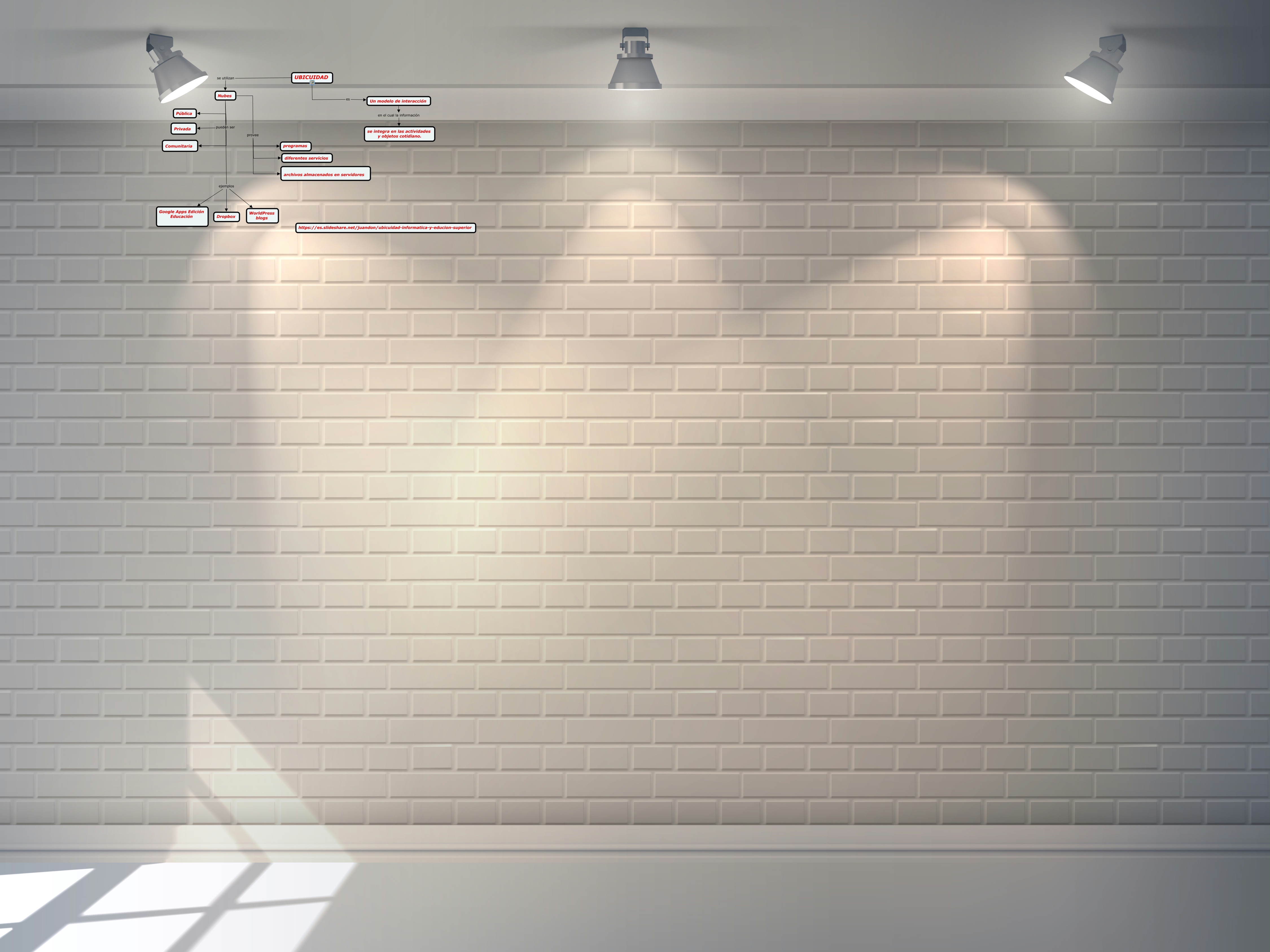 This Concept Map, created with IHMC CmapTools, has information related to: Ubicuidad, Nubes provee diferentes servicios, Nubes ejemplos Google Apps Edición Educación, Nubes ejemplos Dropbox, Nubes provee programas, UBICUIDAD se utilizan Nubes, Nubes pueden ser Privada, Nubes ejemplos WorldPress blogs, Nubes pueden ser Pública, Un modelo de interacción en el cual la información se integra en las actividades y objetos cotidiano., Nubes pueden ser Comunitaria, Nubes provee archivos almacenados en servidores, UBICUIDAD es Un modelo de interacción