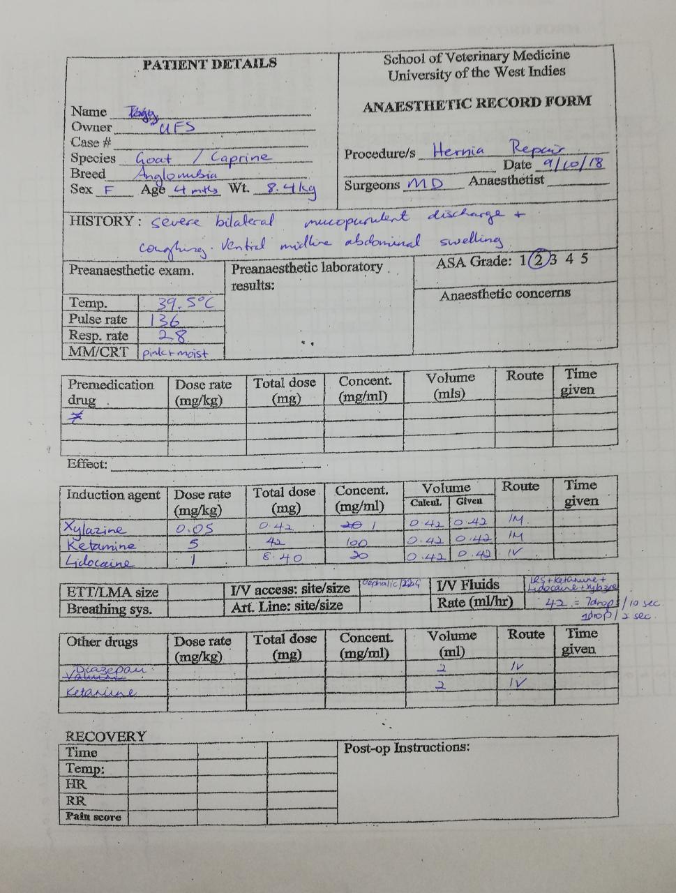 22G catheter.PNG Anaesthetic record form.jpeg Benefits of CRI.PNG Clamp placement_x264.mp4 Complicated hernia.PNG cruciate.png Diagnostic lab form.jpeg Drip rate.PNG Drugs for Fluid bag.PNG Ellipitical Incision.PNG epi.jpeg epidural_x264.mp4 feeling for adhesions.PNG hernia.jpeg Hernia after placement of ring.jpeg Hernia Clamp.jpeg Hernia sac incision and adhesion check.MP4 Horizontal mattress suture.jpg Incision and hernia sac.PNG Initial scrub.MP4 lido IV.jpeg Male incision.PNG Marsupalization.PNG monitoring.jpeg Near far-far near suture.jpg pds.gif Placement of the lamb for surgery.jpg Prerequisites for using CRI.PNG reducible nature.jpeg Scrub solution.PNG shaved.jpeg Skin disinfection.MP4 Skin undermining and removal.MP4 splash block.MP4 Surgical equipment.jpg Tetanus antitoxin SC injection_x264.mp4 Umbilical structures.PNG vest over pants hernia repair_x264.mp4 Vital record form.jpeg Volume of Drugs for Fluid bag.PNG What is CRI.PNG