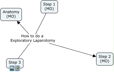 This Concept Map, created with IHMC CmapTools, has information related to: Exp Lap II, Step 1 (MO) How to do a Exploratory Laparotomy Anatomy (MO), Step 1 (MO) How to do a Exploratory Laparotomy Step 2 (MO), Step 1 (MO) How to do a Exploratory Laparotomy Step 3
