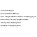 Anatomy.jpg Anatomy.png Anatomy pic.png Balance.jpg Contraindications for Digit Removal img.png Digit Ampu. How.png Digit amputation.url Disarticulation of the P.I.J Procedure img.png Dutch 1.jpg Dutch 2.jpg EHK.jpg Grinder.jpg high and low landmark.jpg High digit amputation.png Hoof Nippers.jpg image.jpg Indications for Digit Removal img.png Knife Sharpener.jpg Loose.jpg Partner.jpg PPE.jpg Principles.jpg Protractor.jpg Rasp.jpg Screenshot 2018-11-19 at 11.22.21 PM.png Soles.jpg Tester.jpg Toe length.jpg Why.png