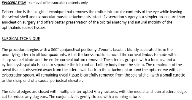 18G 10cm needles.jpg 2 clamp placement.jpg 3rd clamp placement.jpg 3rd eyelid.jpg 4-point block.mp4 4pt block.PNG 5ml syringe.gif Anatomy of bovine eye.jpg auriculopalpebral block.jpg Auriculopalpebral Nerve Block.PNG Auriculopalpebral Nerve Block pic.png cattle squeeze.png Clamped pedicule (blue for retrobulbar block).jpg Clamping fo the pedicule.jpg Cow's eye.gif deep layer.PNG Entropion Complications.png Enucleation Technique.png example of curved needle for 4pt block.jpg EYE MUSCLES.JPG figure eight.jpeg figure of 8 suture (untied).jpg Ford interlocking pattern, pot exenteration.PNG gauze-swabs.jpg Goat.jpg haltered bovine.jpg Lacerations.jpg latex-gloves-non-powdered-non-sterile.jpg nose-thongs.jpg peterson's block.jpg Peterson's NB.jpg Peterson Block injection.mp4 Peterson Nerve Block.mp4 Post-op closed incision.jpg Preped are and closed eyelid.jpg Removed orbit+muscles+3rd eyelid tissue.jpg SCC of the 3rd eyelid.PNG skin closure.PNG Stanchion.png sterile saline.jpg stitch-scissors.jpg Sub conjuctival injection.mp4 Syringe-20ml-lg.jpg