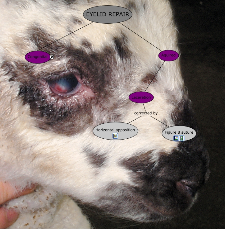 This Concept Map, created with IHMC CmapTools, has information related to: EYELID REPAIR CMAP, Laceration corrected by Horizontal apposition, Entropion Corrected by Modified Holtz Celsus, EYELID REPAIR Aquired, Ectropion Corrected by Margin Sparing, Ectropion Corrected by V Plasty, Entropion Corrected by Tacking, EYELID REPAIR Congenital, Ectropion Corrected by Wedge Resection, Laceration corrected by Figure 8 suture, Aquired Laceration