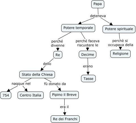 Questa Cmap, creata con IHMC CmapTools, contiene informazioni relative a: papa Fabio Sebastiano 1A, Papa deteneva Potere spirituale, Stato della Chiesa naqque nel Centro Italia, Re dello Stato della Chiesa, Stato della Chiesa naqque nel 754, Decime erano Tasse, Potere temporale perché divenne Re, Potere spirituale perchè si occupava della Religione, Papa deteneva Potere temporale, Stato della Chiesa fù donato da Pipino il Breve, Potere temporale perché faceva riscuotere le Decime, Pipino il Breve era il Re dei Franchi